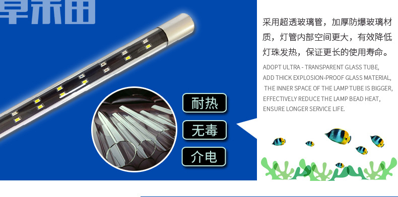 T8 유리관 변색 LED 수족관 램프 분위기 빨강, 흰색, 파랑 및 녹색 3 색 관상용 물고기 브라이트닝 램프스토어 가기