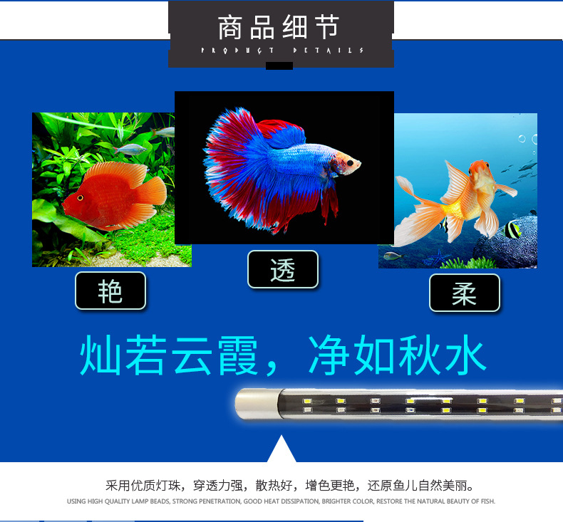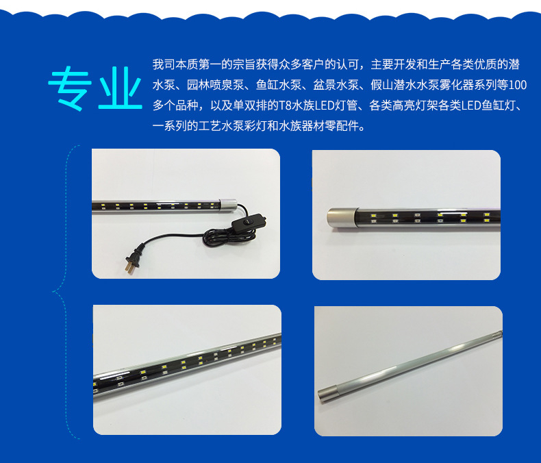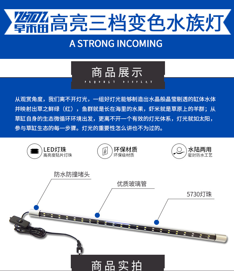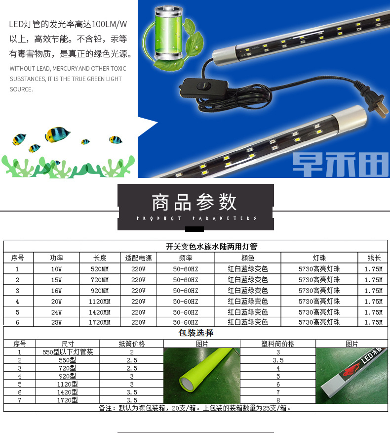 T8 유리관 변색 LED 수족관 램프 분위기 빨강, 흰색, 파랑 및 녹색 3 색 관상용 물고기 브라이트닝 램프