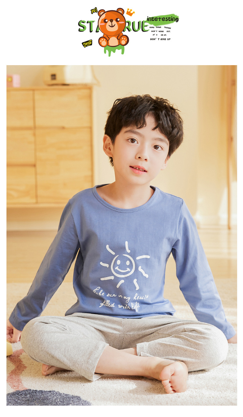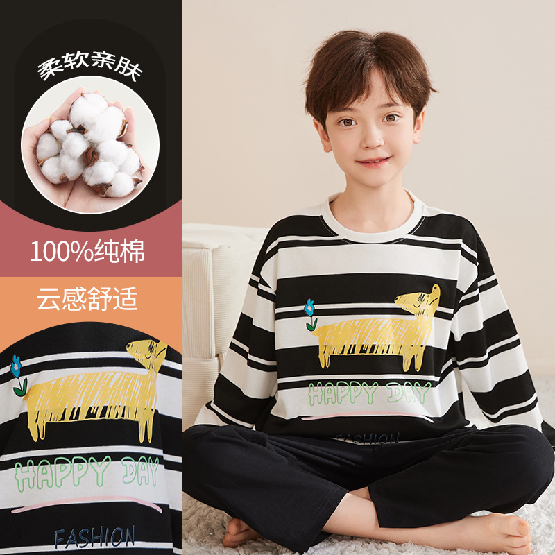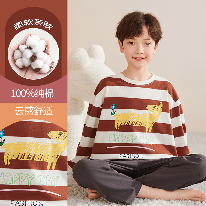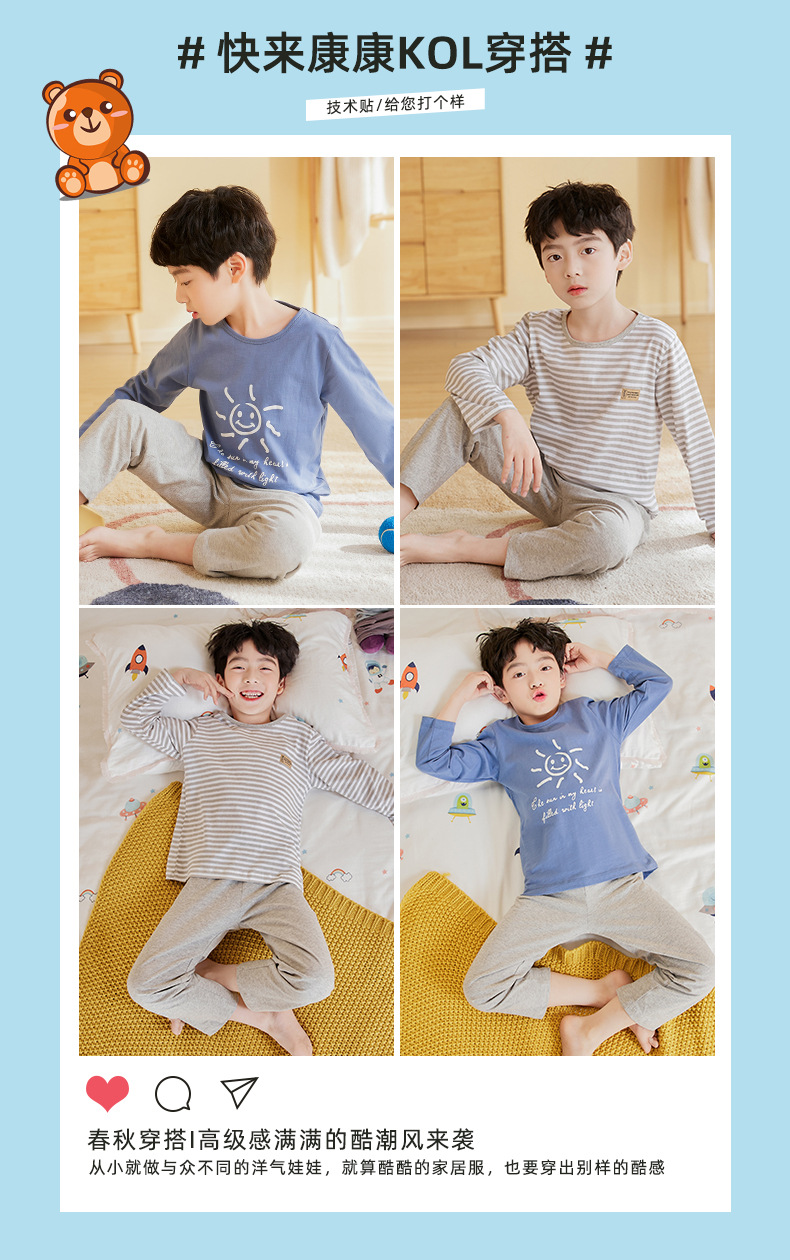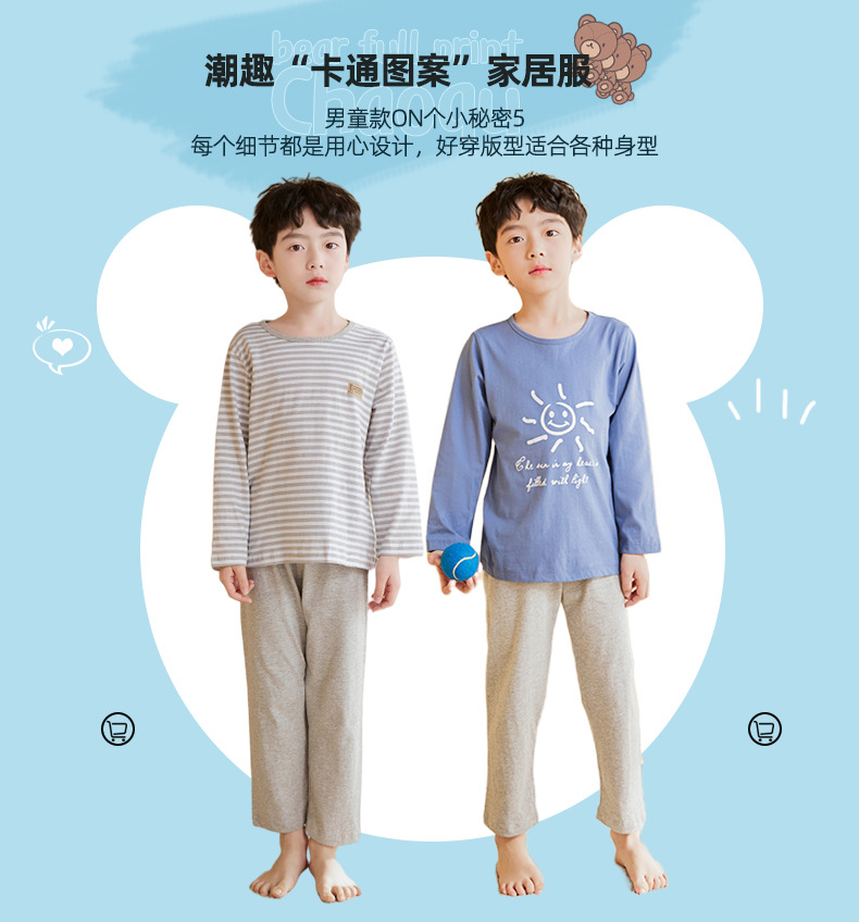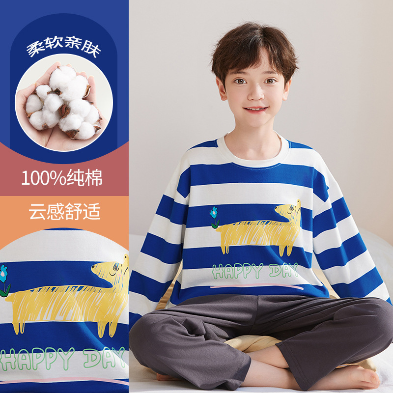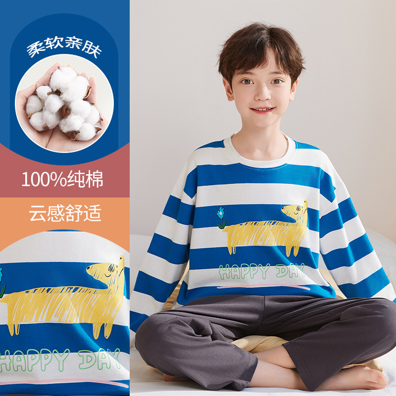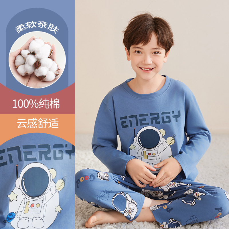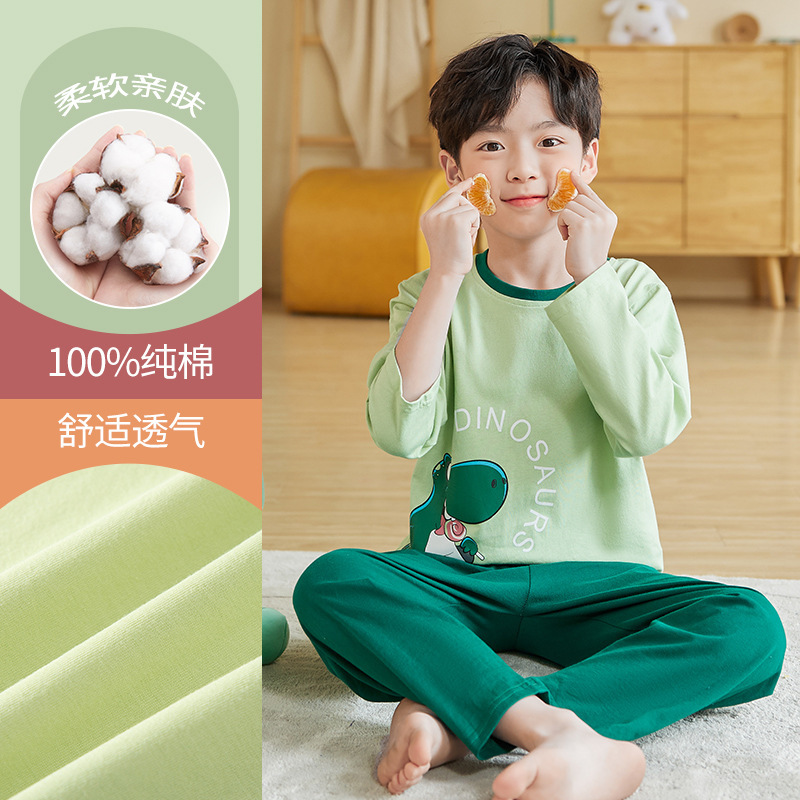 남아용 잠옷, 순면, A급 가정복, 봄, 가을 아동복, 아동복, 순면, 중소형 아동용 긴팔 투피스 세트, 트렌디스토어 가기