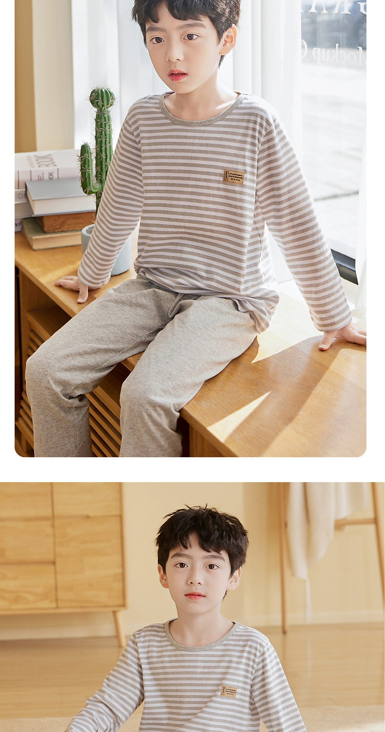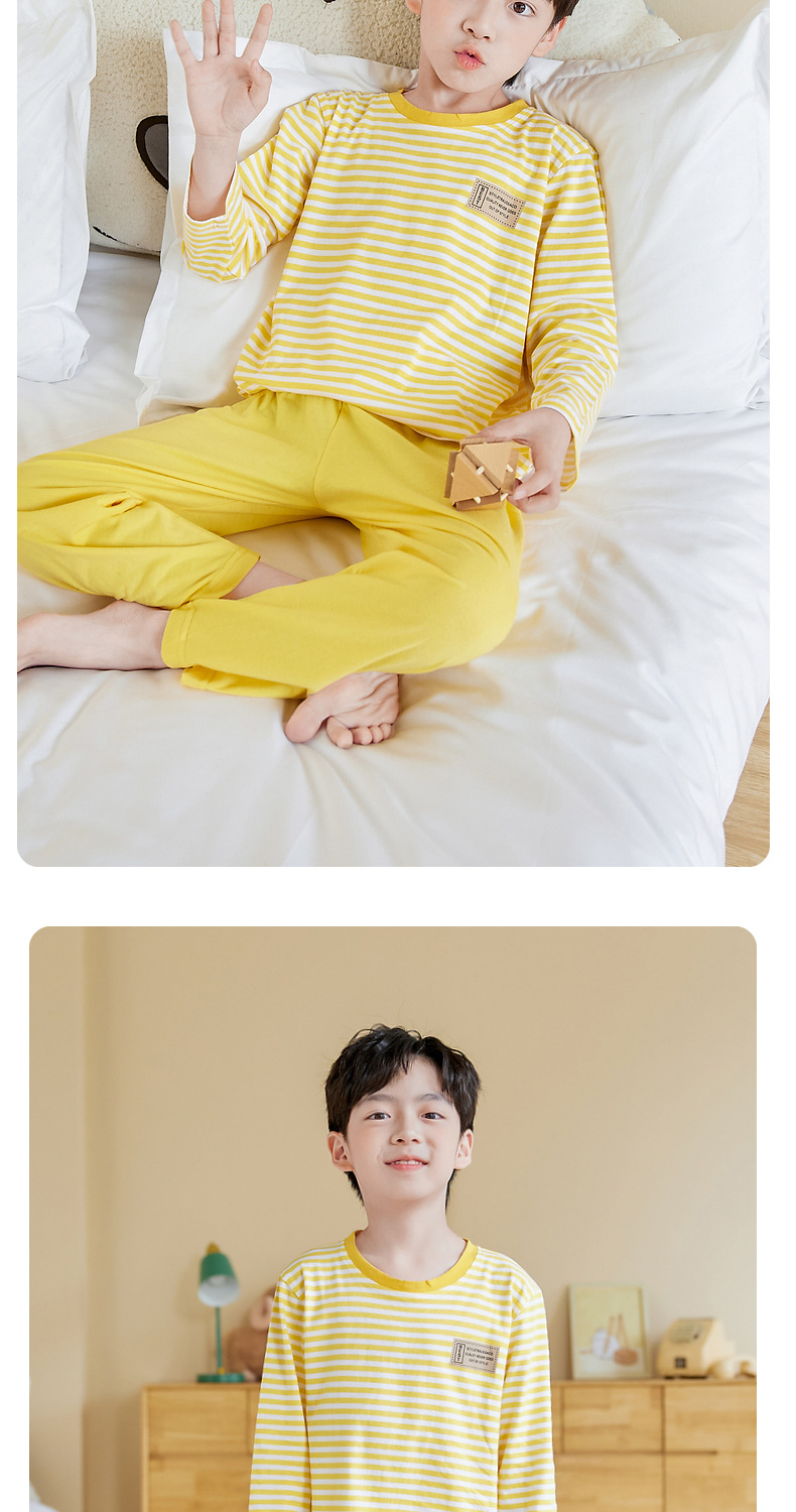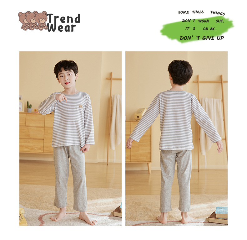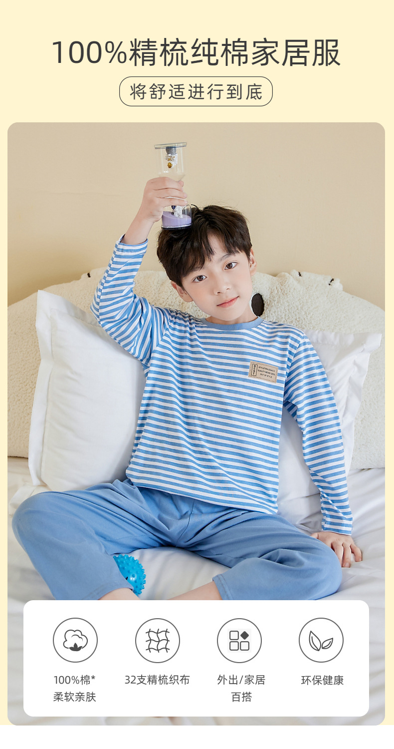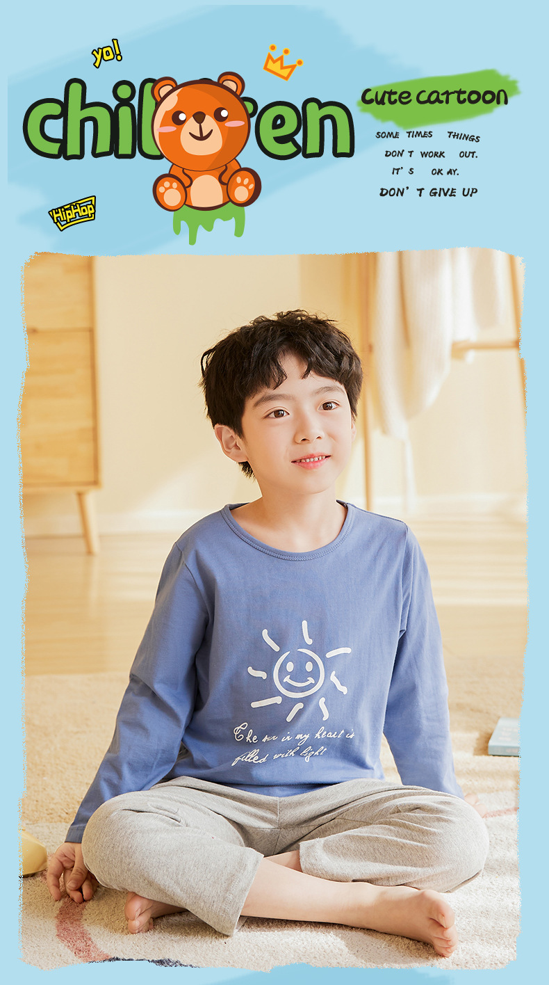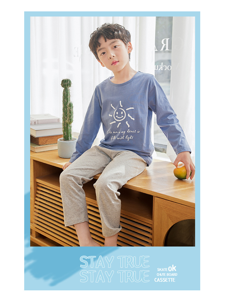 남아용 잠옷, 순면, A급 가정복, 봄, 가을 아동복, 아동복, 순면, 중소형 아동용 긴팔 투피스 세트, 트렌디스토어 가기