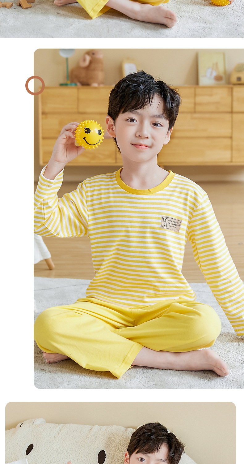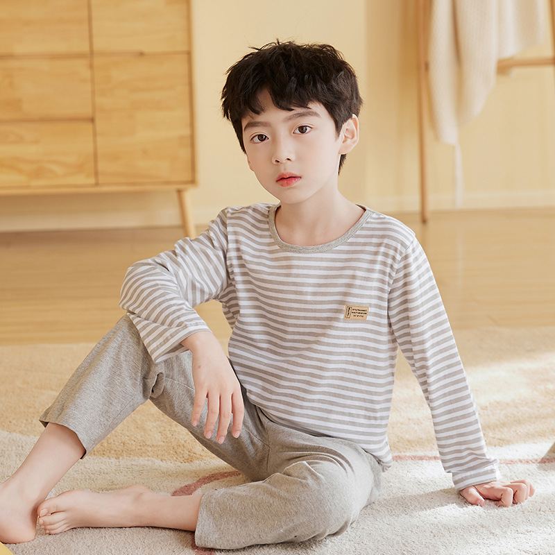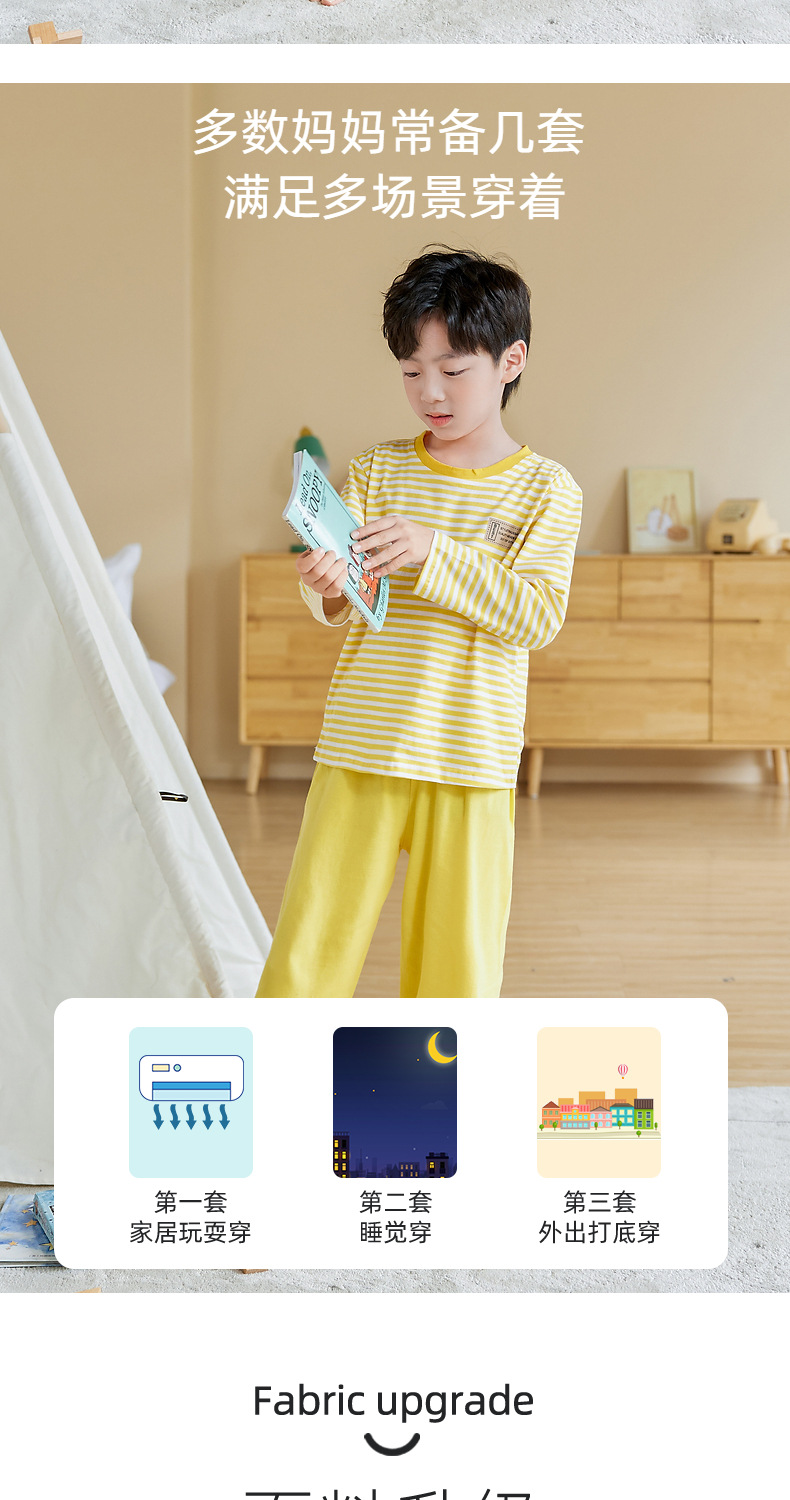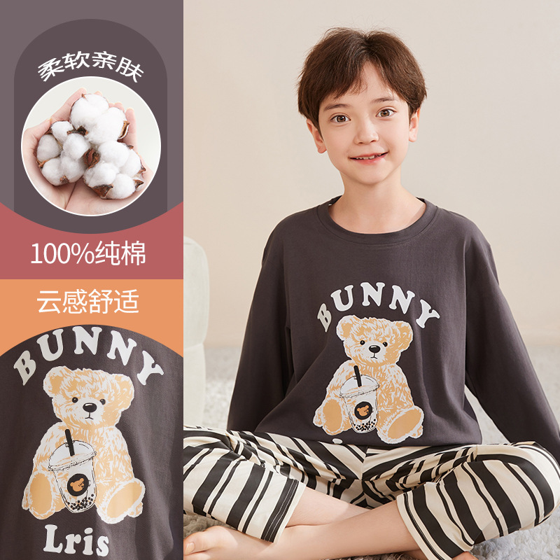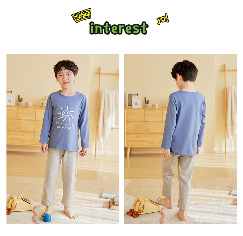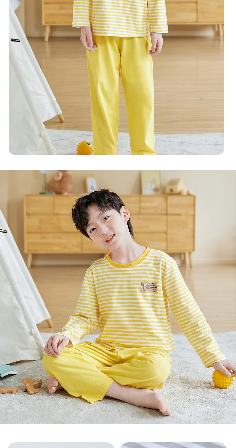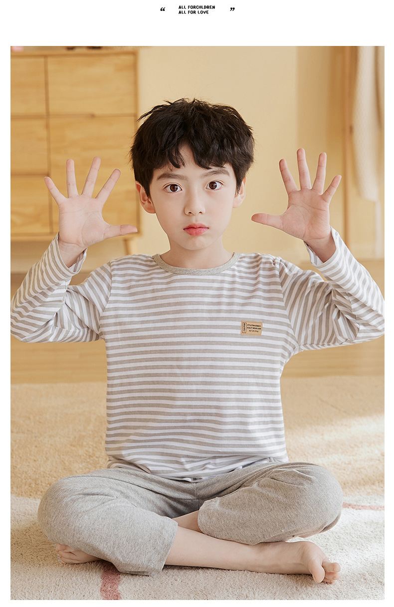 남아용 잠옷, 순면, A급 가정복, 봄, 가을 아동복, 아동복, 순면, 중소형 아동용 긴팔 투피스 세트, 트렌디스토어 가기
