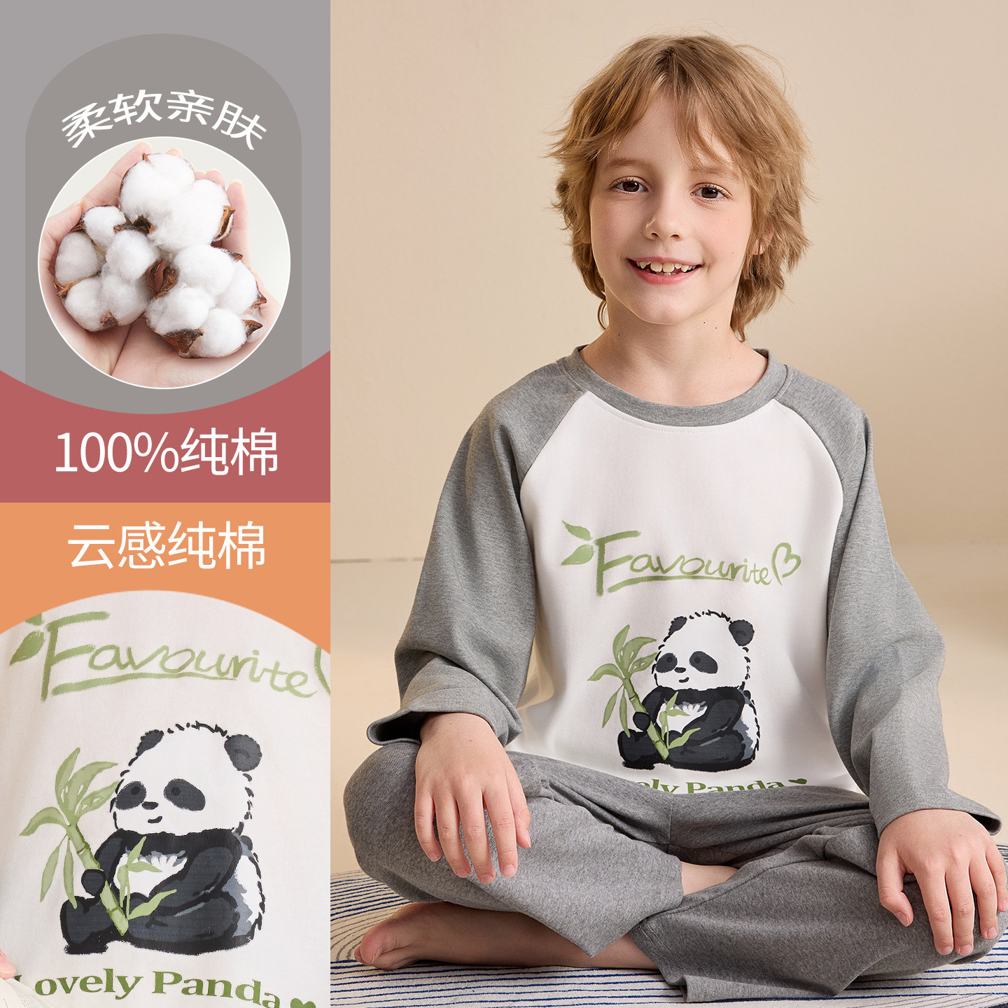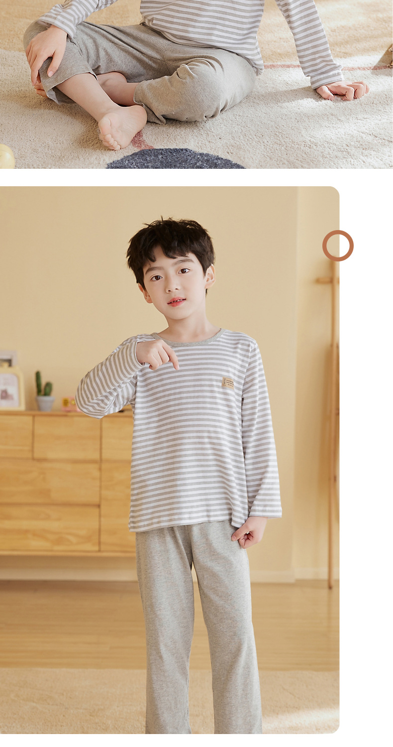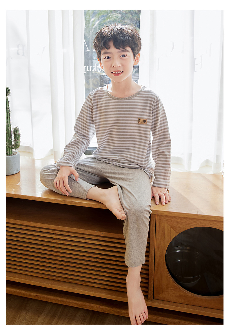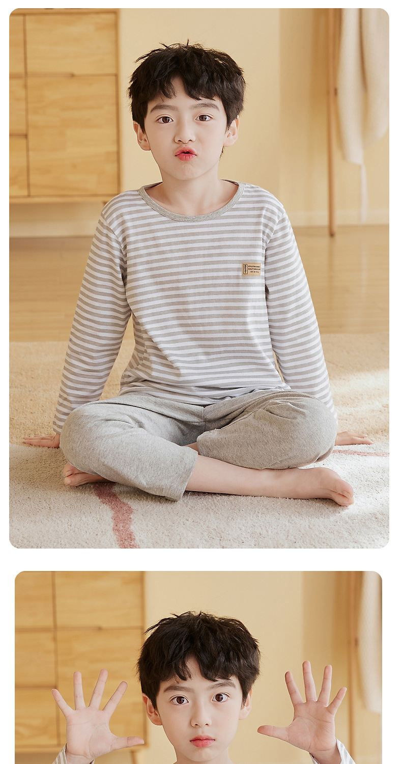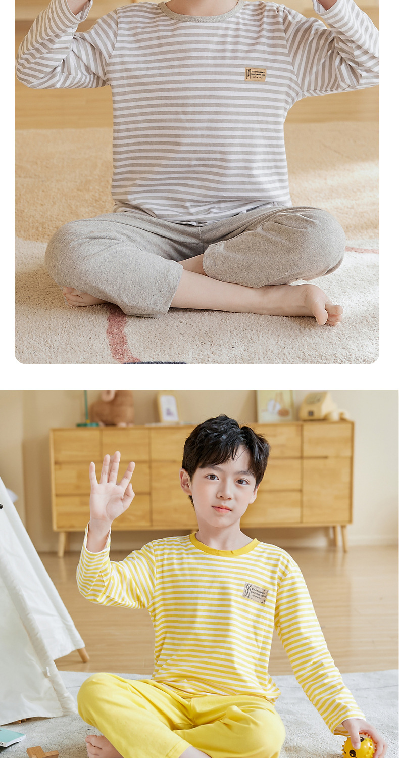 남아용 잠옷, 순면, A급 가정복, 봄, 가을 아동복, 아동복, 순면, 중소형 아동용 긴팔 투피스 세트, 트렌디스토어 가기