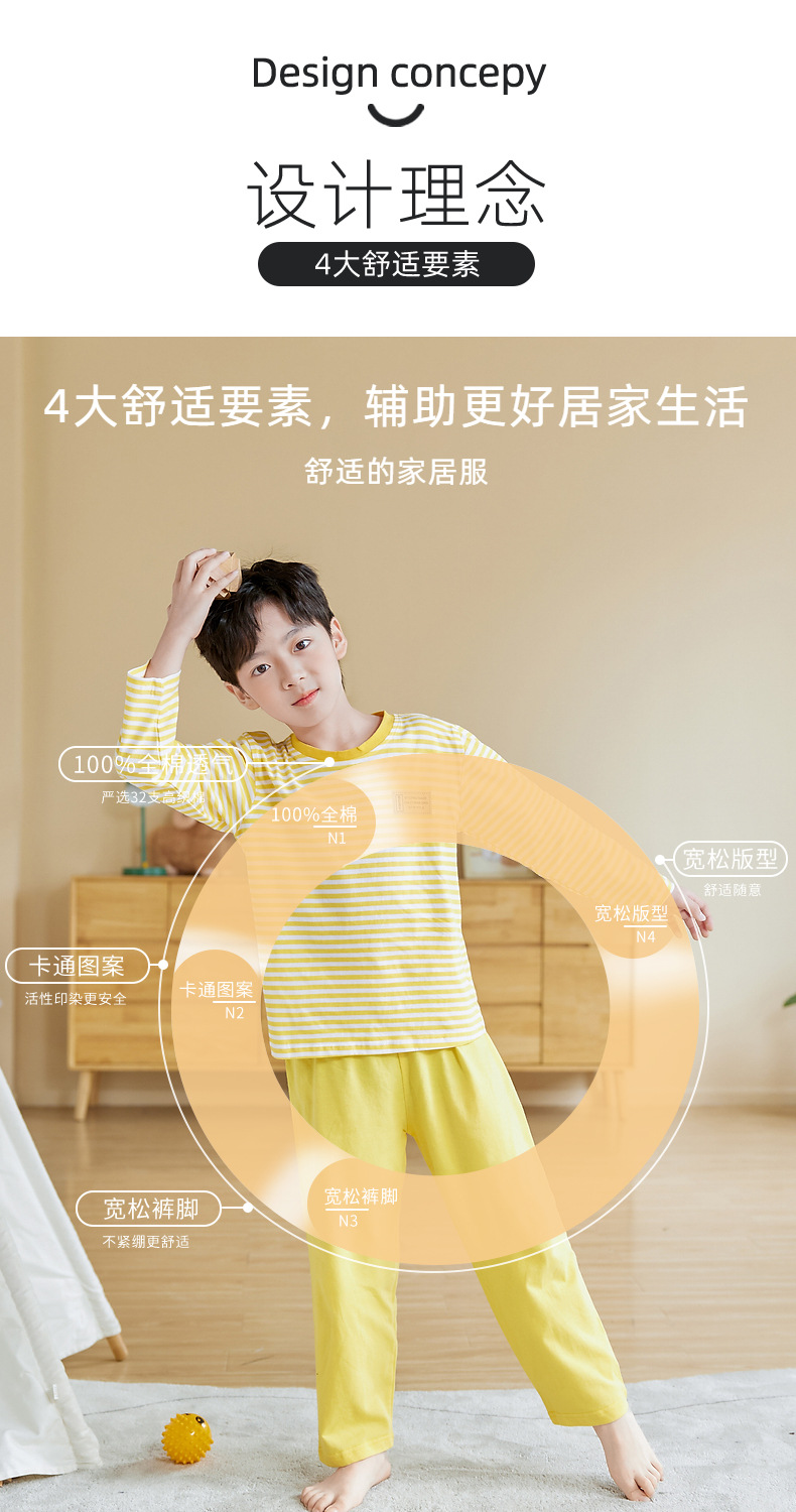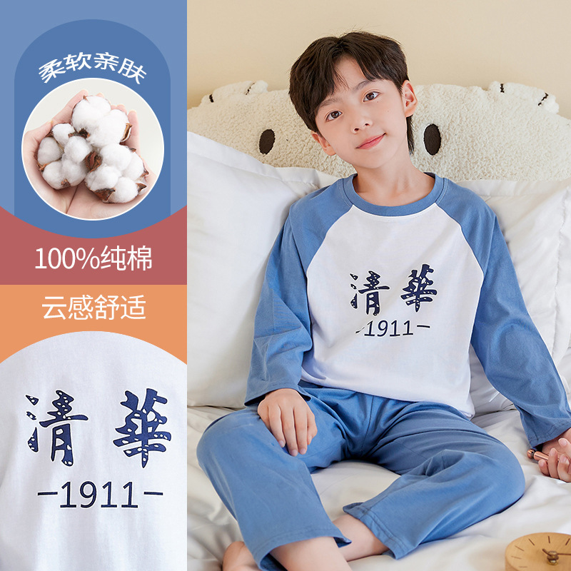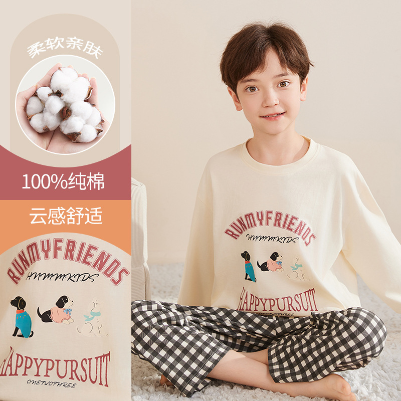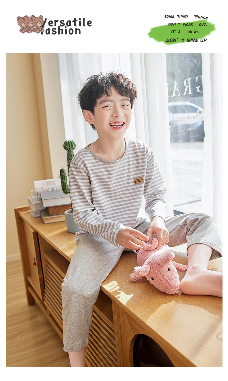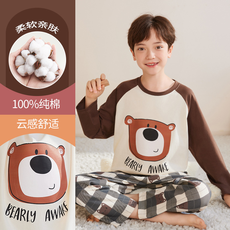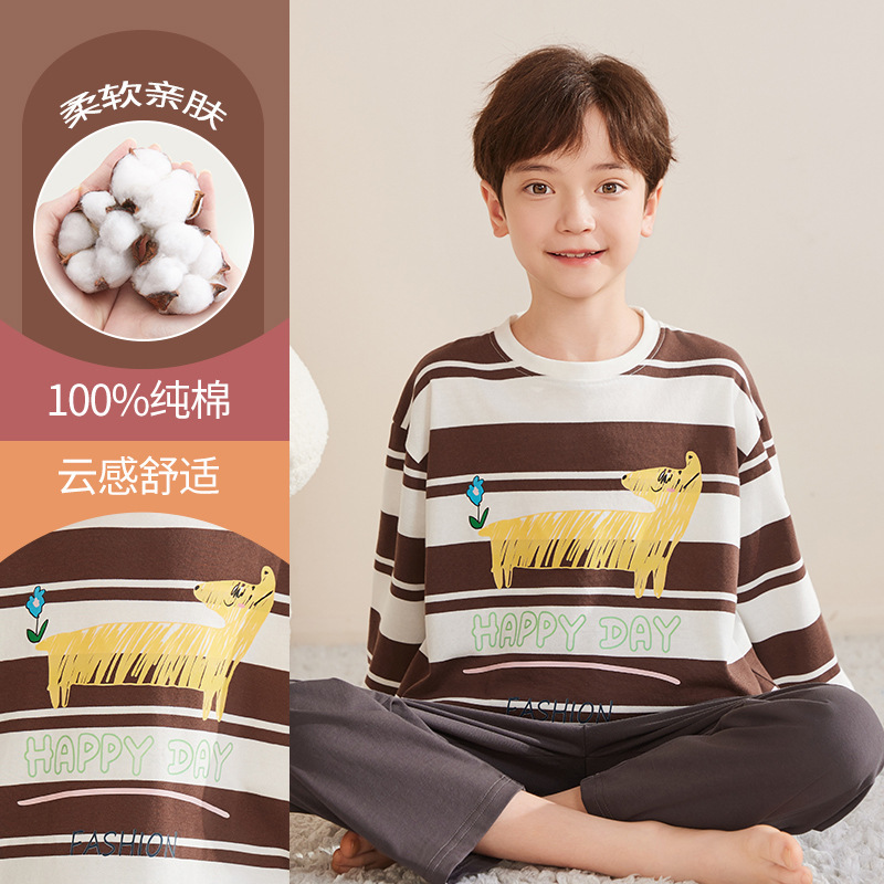 남아용 잠옷, 순면, A급 가정복, 봄, 가을 아동복, 아동복, 순면, 중소형 아동용 긴팔 투피스 세트, 트렌디