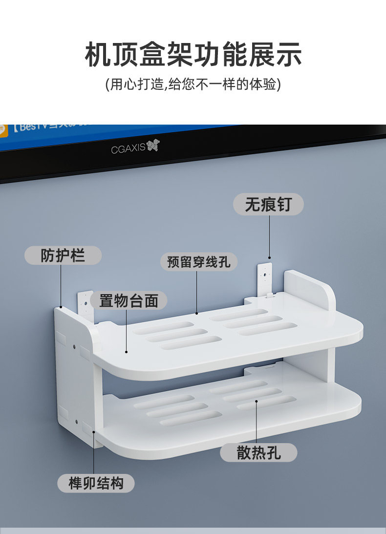 라우터 스토리지 랙 거실 침실 TV 셋톱 박스 랙 벽 구멍 없는 벽걸이 WIFI 보관함스토어 가기