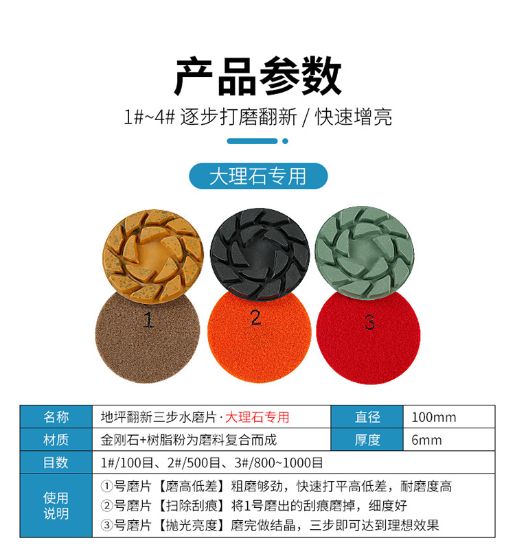 두꺼운 3 단계 테라조 태블릿 대리석 화강암 테라조 바닥 연삭기 석재 리노베이션 연마 패드