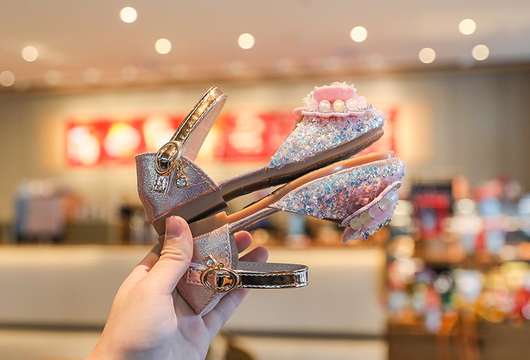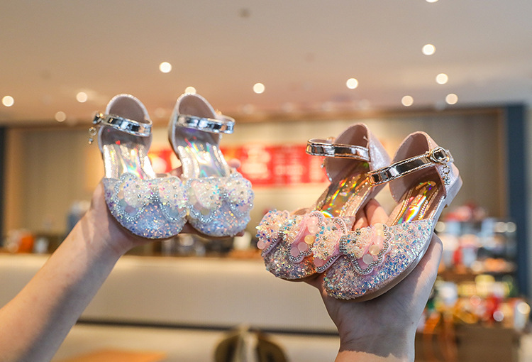 어린이 한국 패션 크리스탈 공주 신발 2025 봄과 여름 새로운 여자 가죽 신발 다목적 Baotou 하프 샌들스토어 가기
