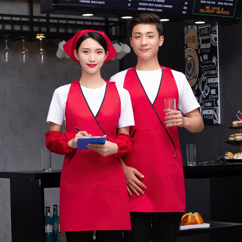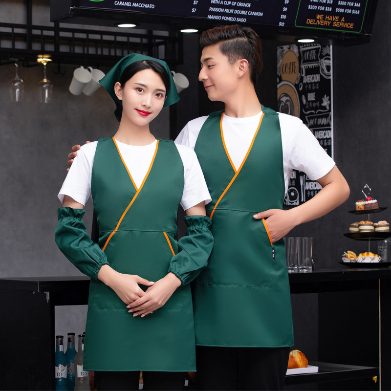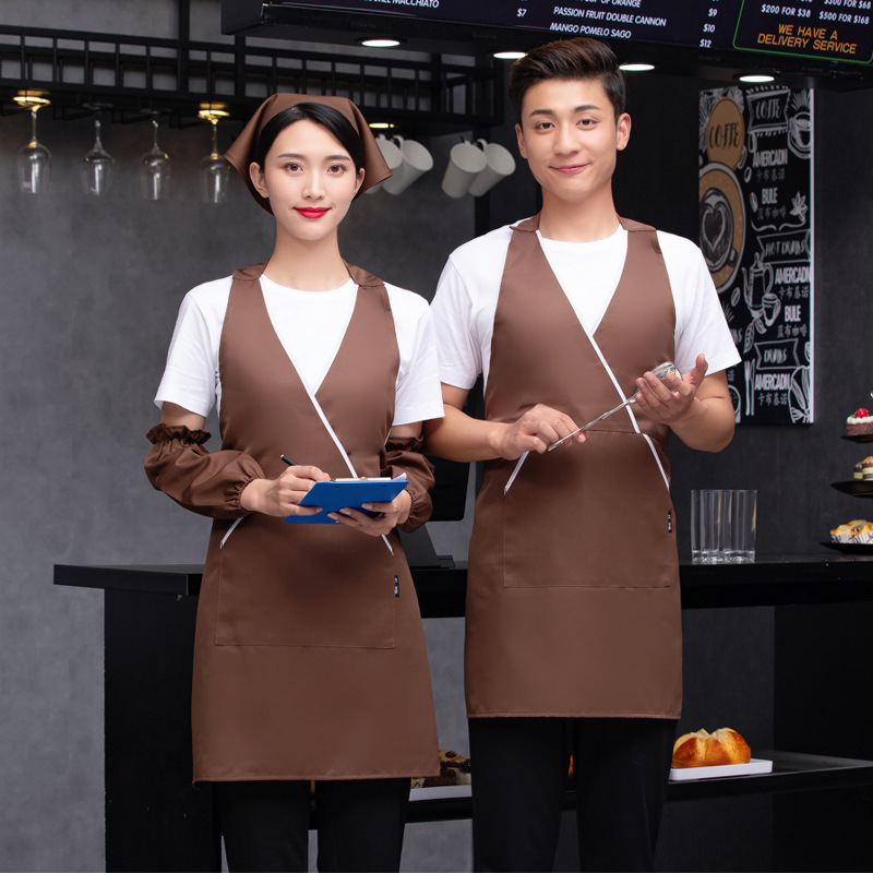 서양 레스토랑 패스트 푸드 커피 숍 우유 차 냄비 웨이터 작업복 가을과 겨울 고삐 폴리 에스테르 면 앞치마 로고 인쇄스토어 가기