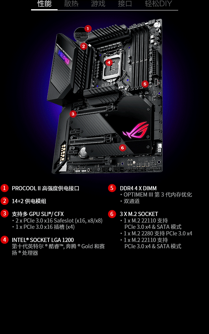 内存描述支持DDR4 4800(超频)/4600(超频)/4500(超频)/4400(超频)/4266(超频)/4133(超频)/4000(超频)/3866(超频)/3733(超频)/3600(超频)/3466(超频)/3333(超频)/3200(超频)/3000(超频)/2933(超频)/2800(超频)/2666/2400/2133MHz内存