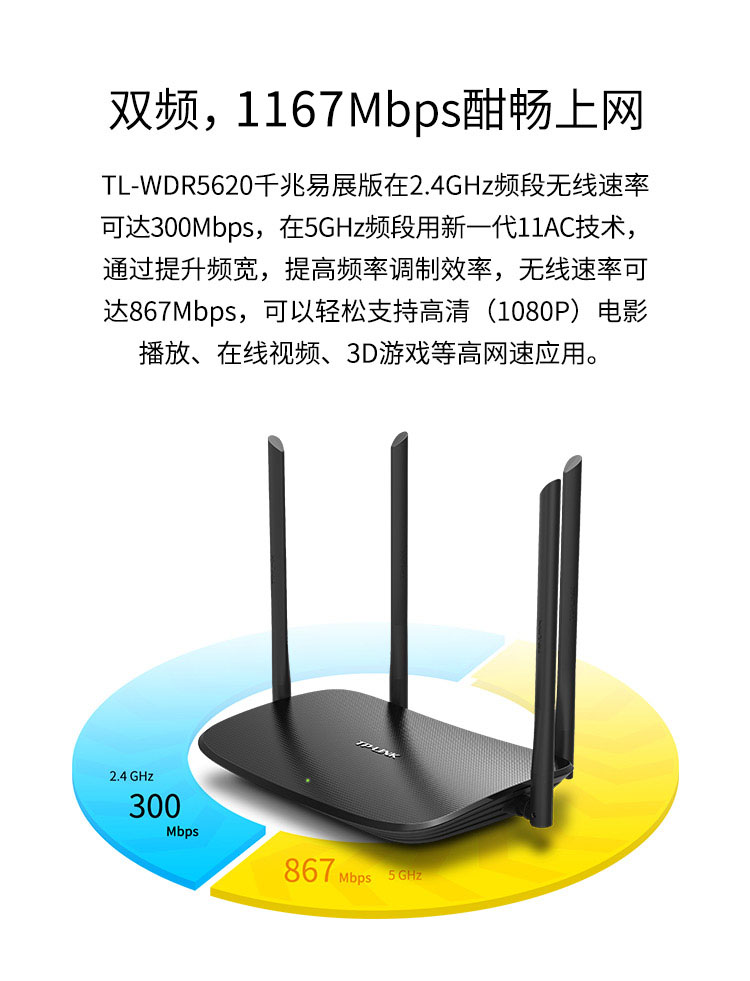 기가비트 쉬운 전시 판 1200 듀얼 밴드 기가비트 무선 라우터 홈 5G TP-LINKTL-WDR5620 적용 가능스토어 가기