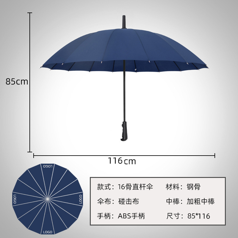 • 16K 스트레이트 핸들 네이비-총알 머리 우산 상단