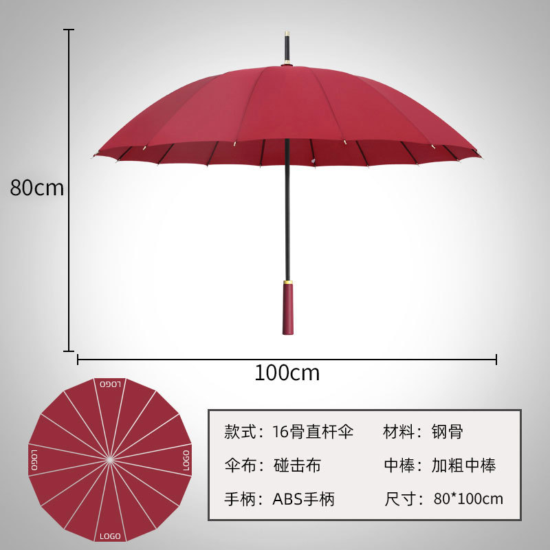 • 16K 스트레이트 핸들 버건디-총알 머리 우산 상단