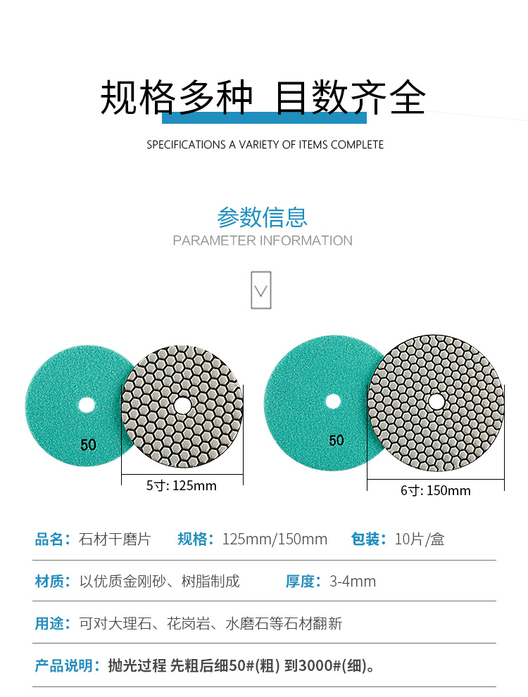 5 인치 6 인치 대리석 드라이 그라인딩 피스 스톤 폴리싱 피스 월 케어 리노베이션 폴리싱 피스 미러 125mm m150mm스토어 가기
