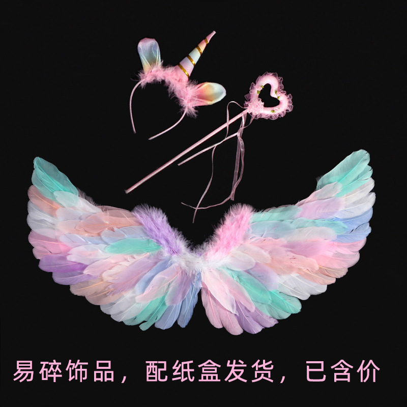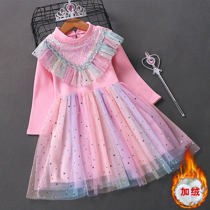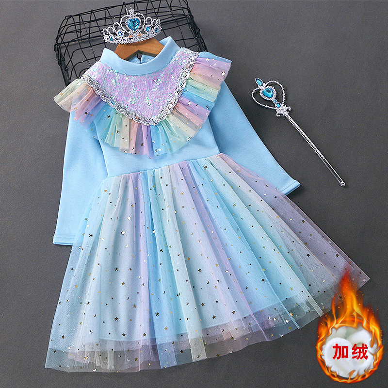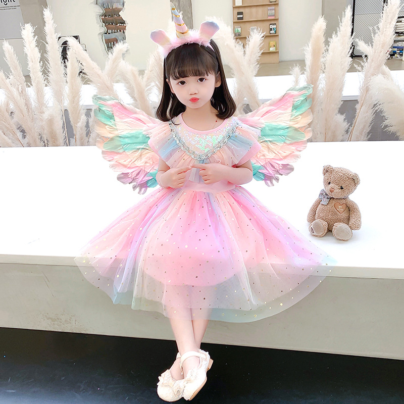 봄 시즌 공주 아이샤 원피스 소녀의 가을 시즌 원피스 무지개 긴 소매 원피스 날개 푹신한 원사 유니콘