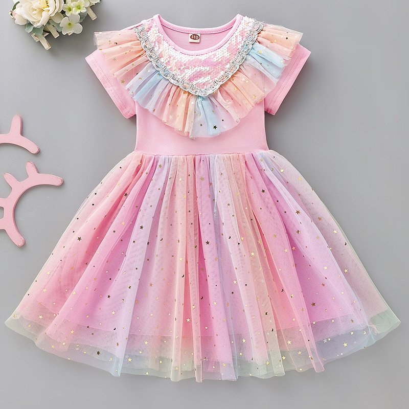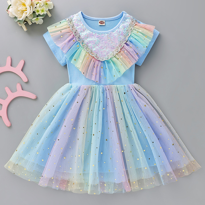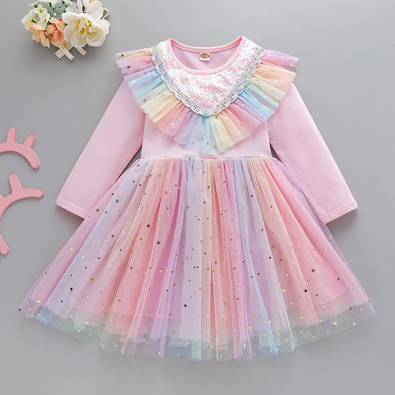 봄 시즌 공주 아이샤 원피스 소녀의 가을 시즌 원피스 무지개 긴 소매 원피스 날개 푹신한 원사 유니콘스토어 가기