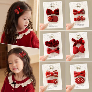 儿童新年红色蝴蝶结发夹女童过年侧边碎发刘海夹可爱喜庆夹子头饰 RMB:1.92