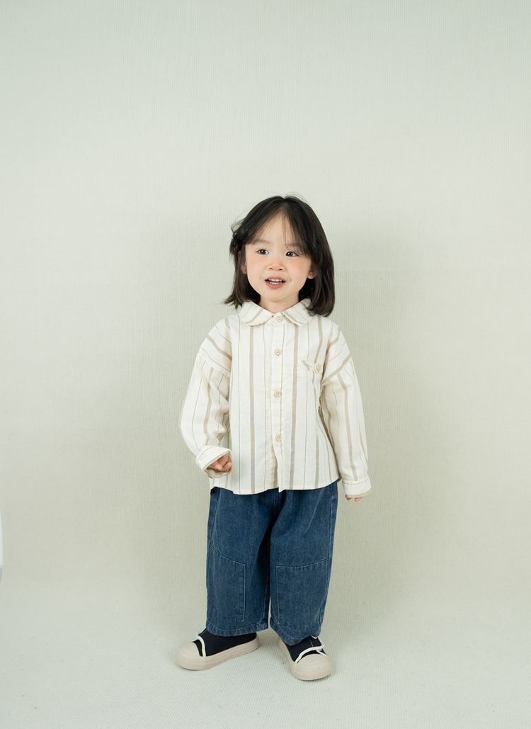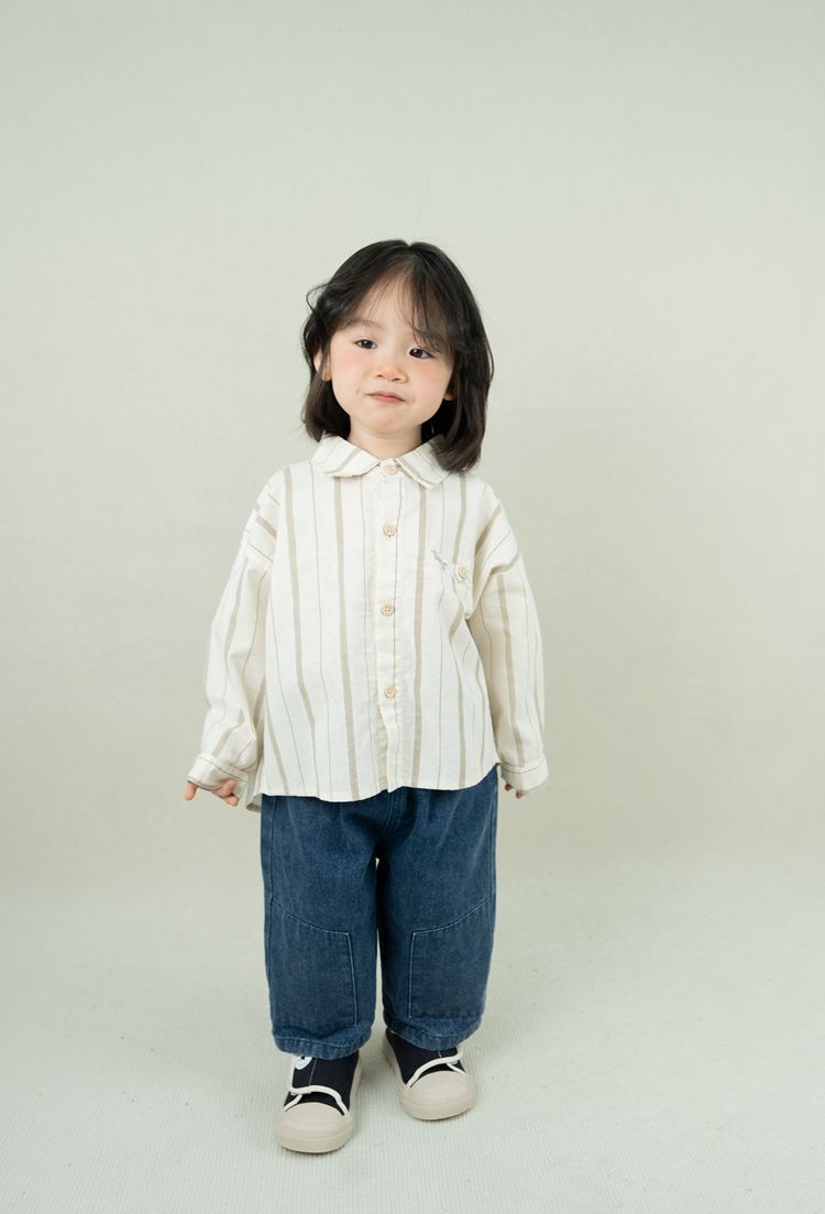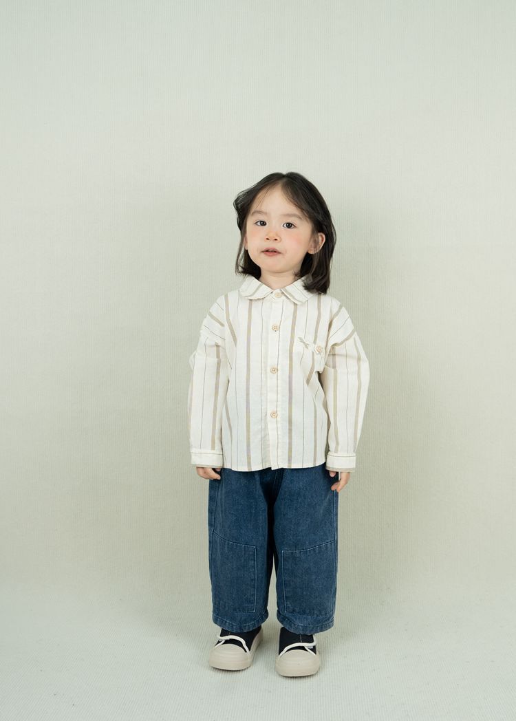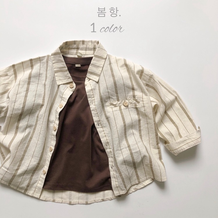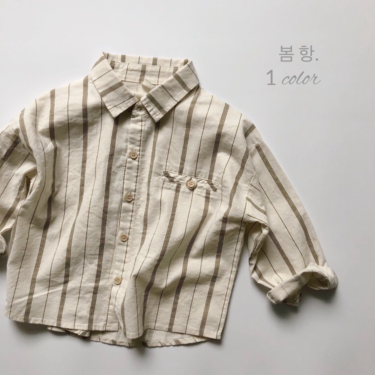 일본 스타일 라미 작은 줄무늬 셔츠 어린이 봄 새로운 한국 스타일 소년과 소녀를위한 우아한 옷깃 카디건 셔츠스토어 가기