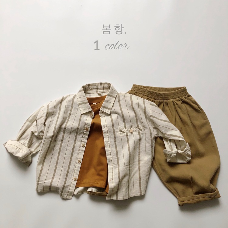 일본 스타일 라미 작은 줄무늬 셔츠 어린이 봄 새로운 한국 스타일 소년과 소녀를위한 우아한 옷깃 카디건 셔츠
