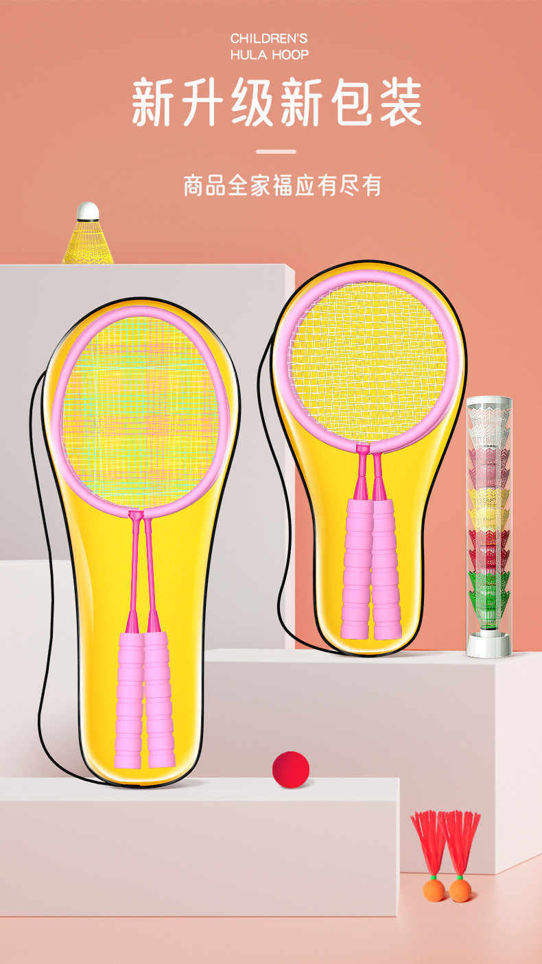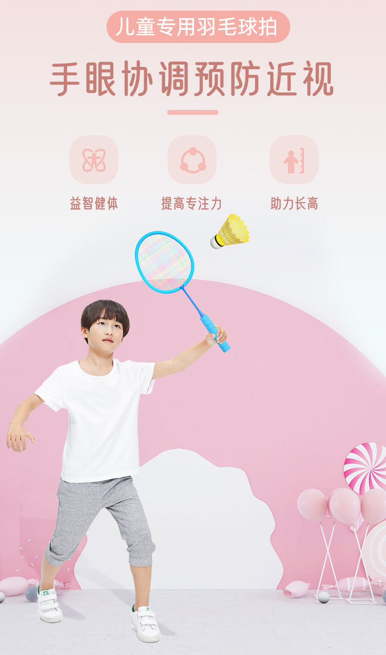 어린이 테두리 배드민턴 라켓 유치원 아기 4 세 초등학교 학생 3-6-12 세 공 장난감 더블 라켓 세트스토어 가기