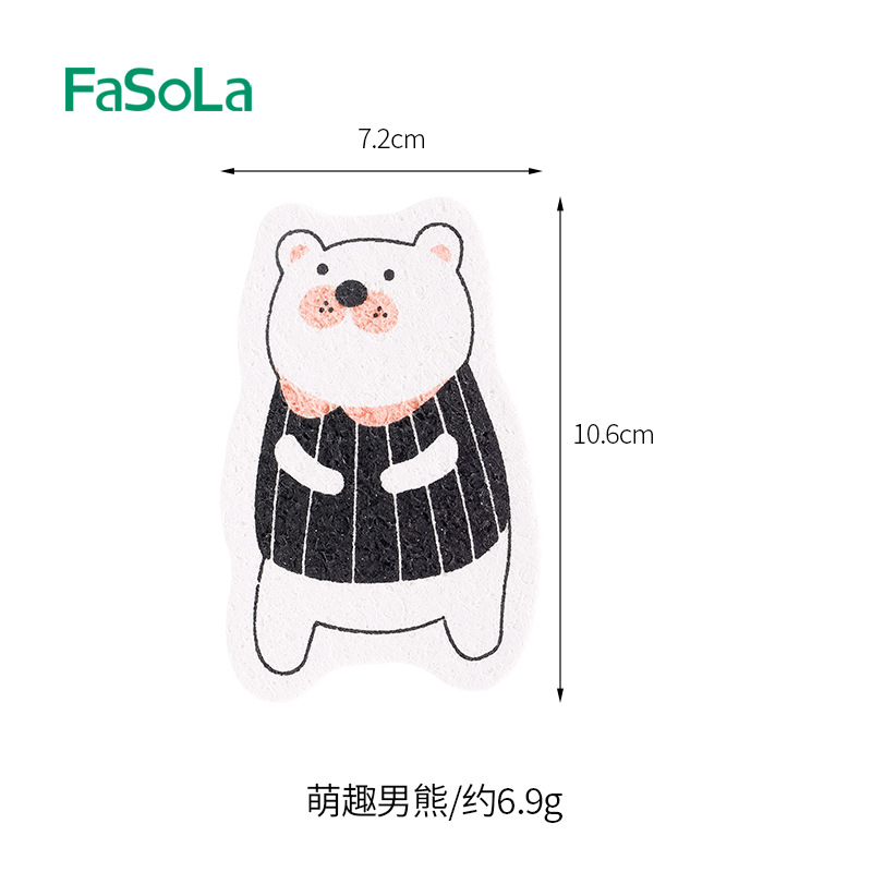 FaSoLa 압축 목재 펄프 면 주방 흡수성 매직 스크럽 냄비 스폰지 브러쉬 만화 내구성 유물 수세미스토어 가기