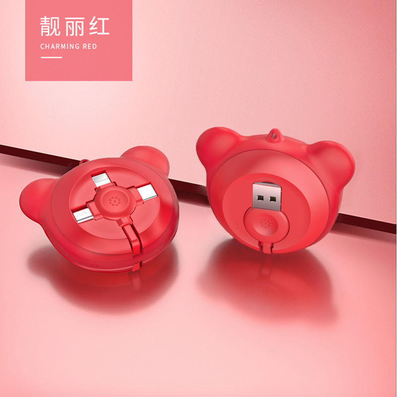 텔레스코픽 데이터 케이블 귀여운 애완 동물 곰 1 드래그 3 휴대용 저장 자동차 3 대 1 휴대 전화 충전 라인 선물스토어 가기