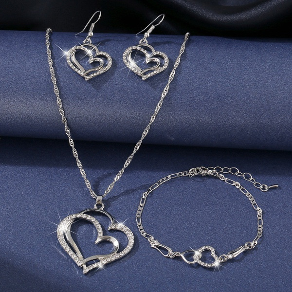 더블 사랑 보석 세트 빛 럭셔리 콜드 스타일 실버 화이트 골든 옐로우 더블 컬러 연인 선물 팔찌 목걸이 귀걸이 세트스토어 가기