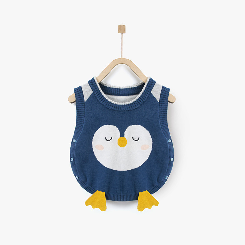 한국식 아동복 만화 니트 조끼 풀오버 아기 조끼 민소매 조끼 중소 아동복 봄 옷