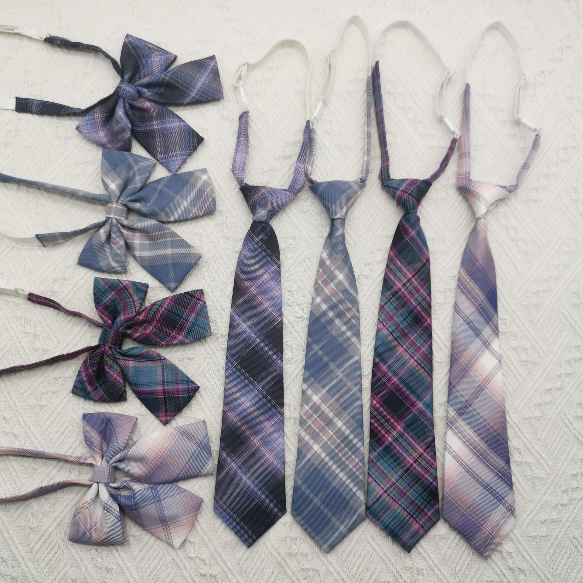 게으른 타이 프리 격자 무늬 넥타이 여자의 대 리 윙클 블루 포도 퍼플 라일락 다크 퍼플 라벤더 퍼플 세트 넥타이 남자