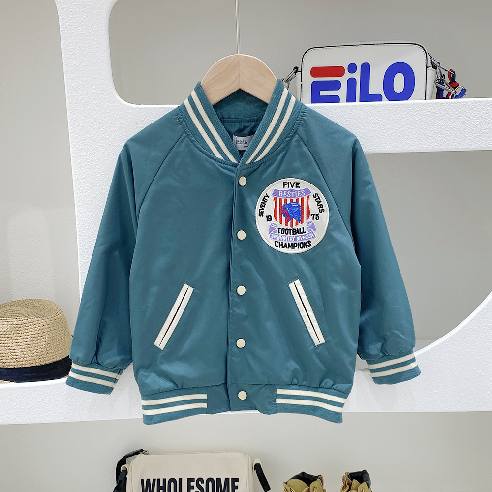 2023 봄, 가을 새로운 스타일 소년 더블 레이어 스타일 탑 어린이 야구 재킷 중대형 어린이 스타일 재킷 유행스토어 가기