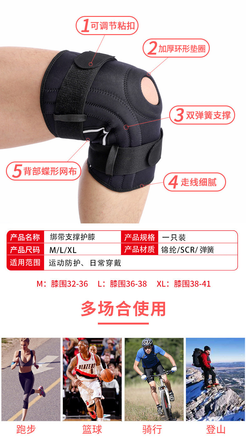 남성과 여성을위한 재고 스트랩 미끄럼 방지 스프링 지원 무릎 패드 야외 등산 및 사이클링 피트니스 가압 스포츠 무릎 패드 커버