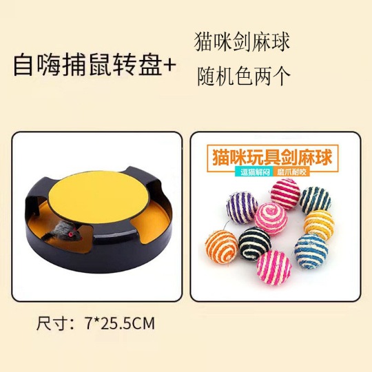 • 노란색 턴테이블 마우스 + 스틸 와이어 깃털 고양이 애타게 스틱