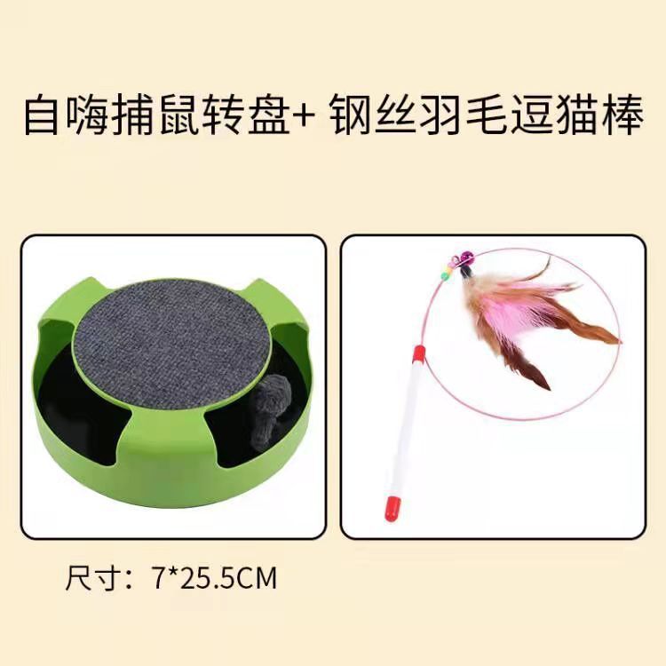 • 녹색 턴테이블 마우스 + 스틸 와이어 깃털 고양이 애타게 스틱