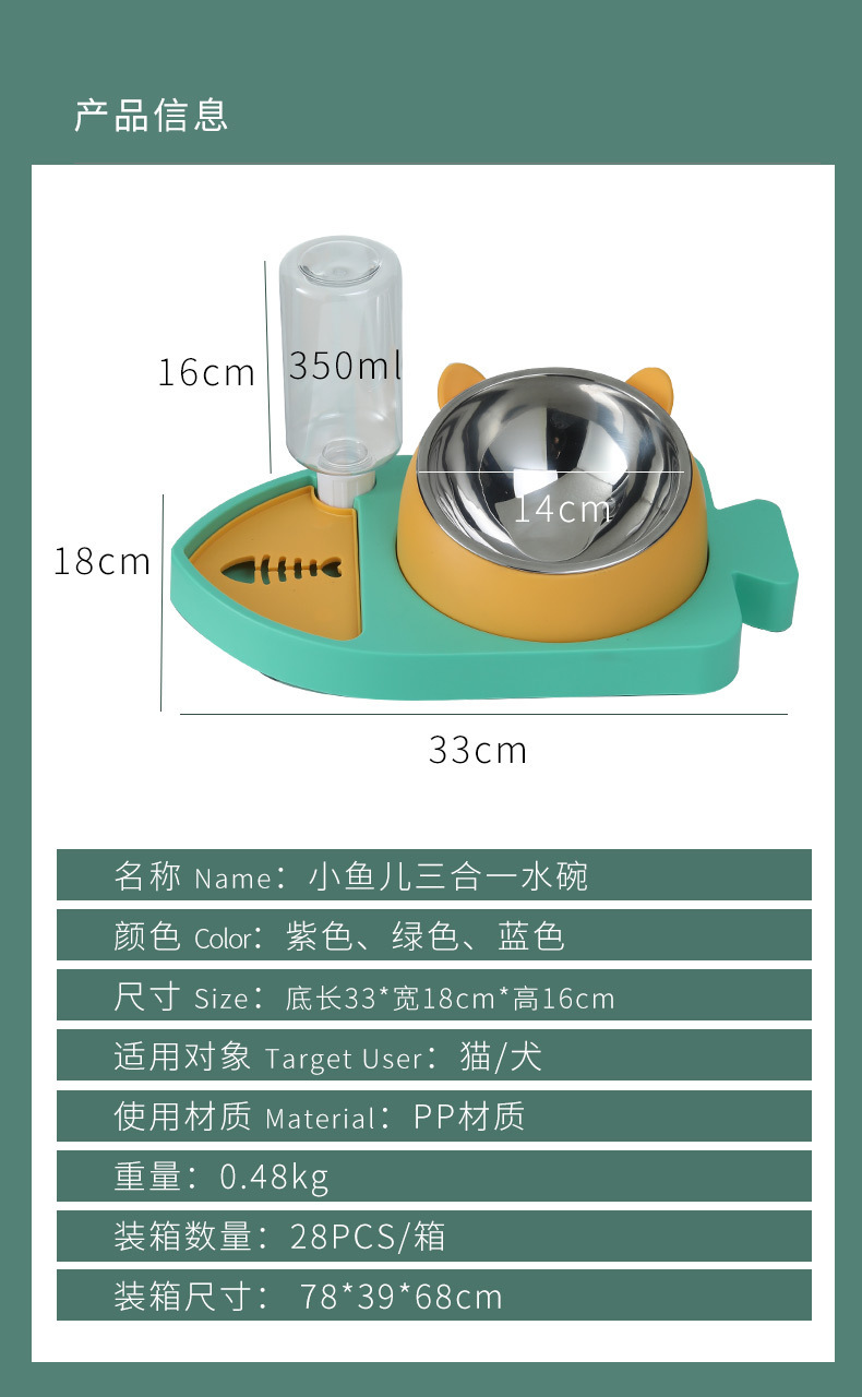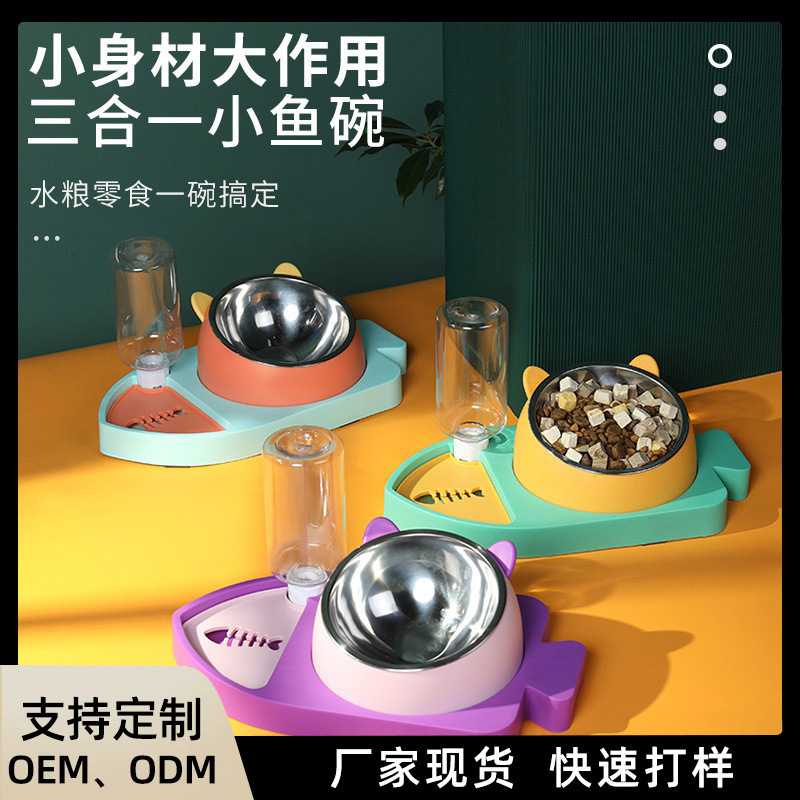애완 동물 고양이 그릇 물 디스펜서 질식 방지 그릇 Three-in-One 고양이 목 보호 자동 음주 노크 방지 질식 방지 개 사료 키트