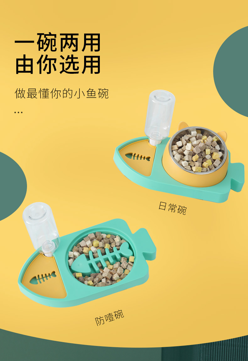 애완 동물 고양이 그릇 물 디스펜서 질식 방지 그릇 Three-in-One 고양이 목 보호 자동 음주 노크 방지 질식 방지 개 사료 키트스토어 가기
