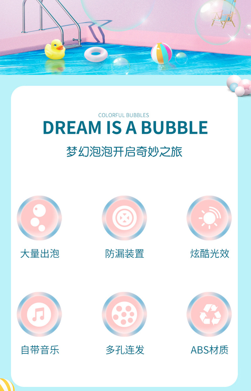 *卖点:电动来福10孔泡泡机长款,一健出泡,丰富的泡泡。