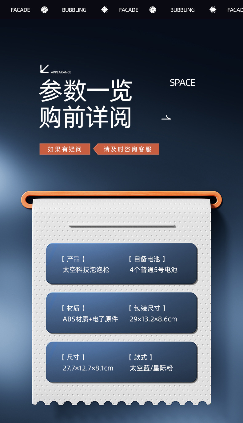 产品清单:枪*1,肩带*1,泡泡水(50ML)*1