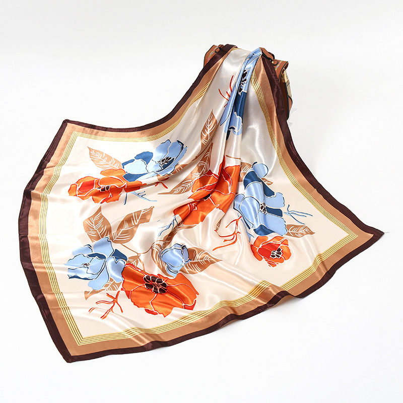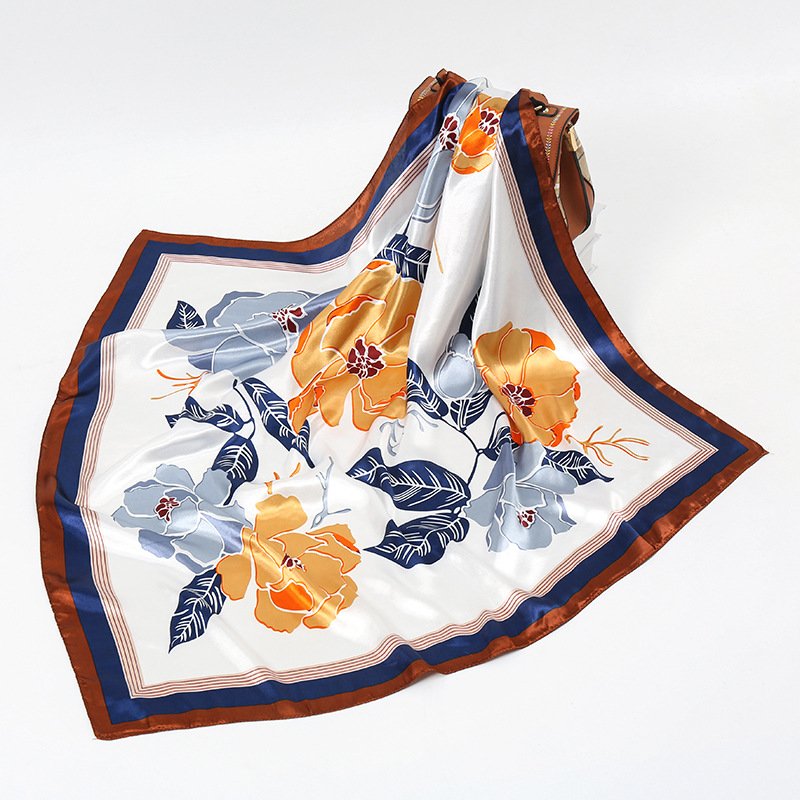 Gao 그는 간단한 우아한 식물 꽃 인공 실크 큰 사각형 스카프 대외 무역 민족 여성의 머리 스카프 장식 목도리