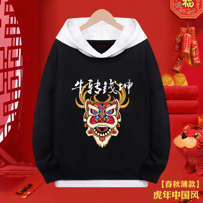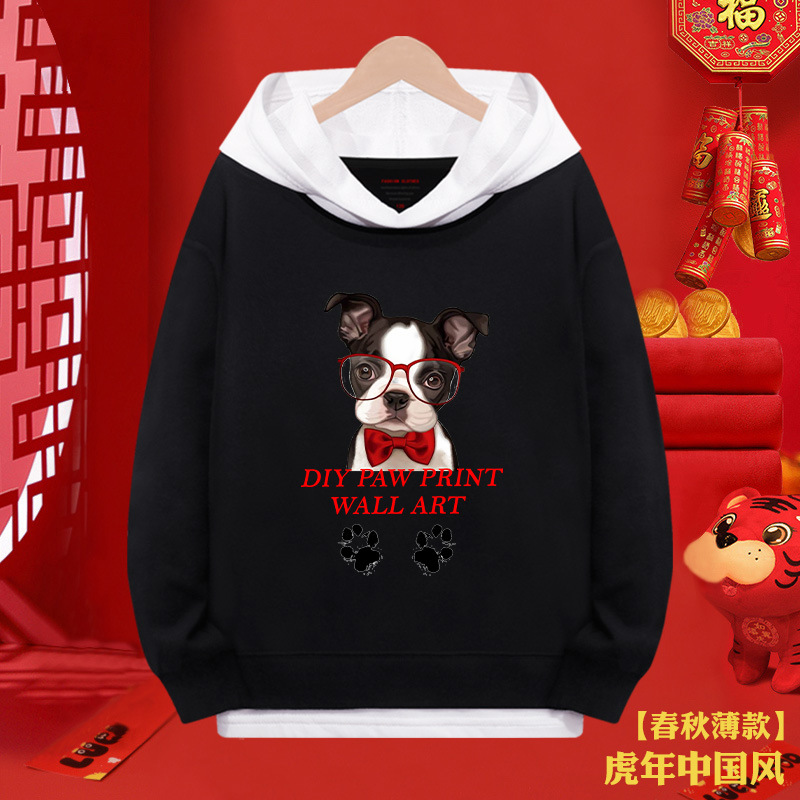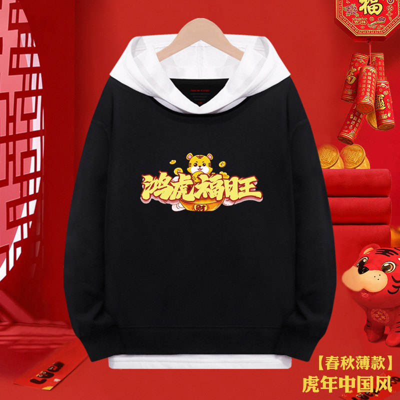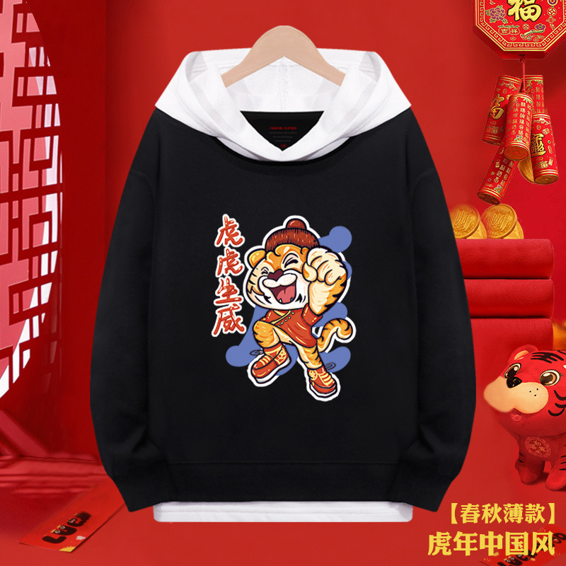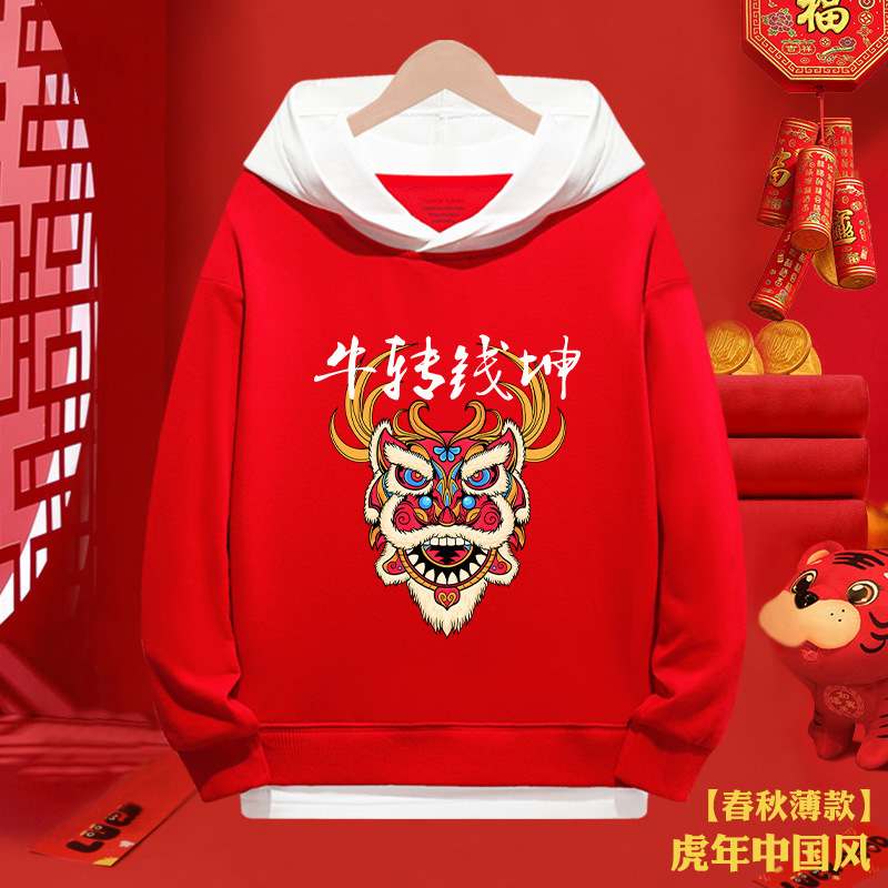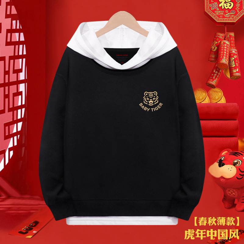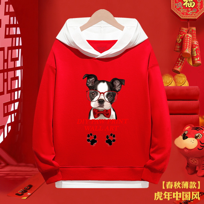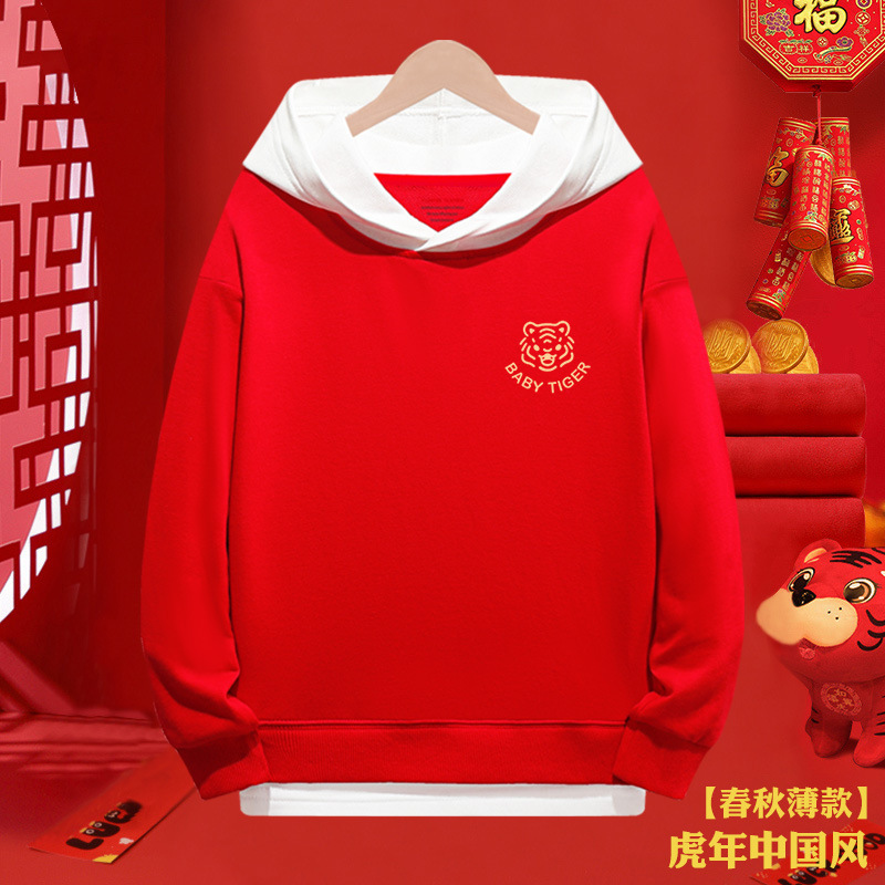 소년 스웨터 붉은 새해 2024 년 타이거 걸스 가짜 투피스 탑 어린이 새해 복 많이 받으세요 축제 옷스토어 가기