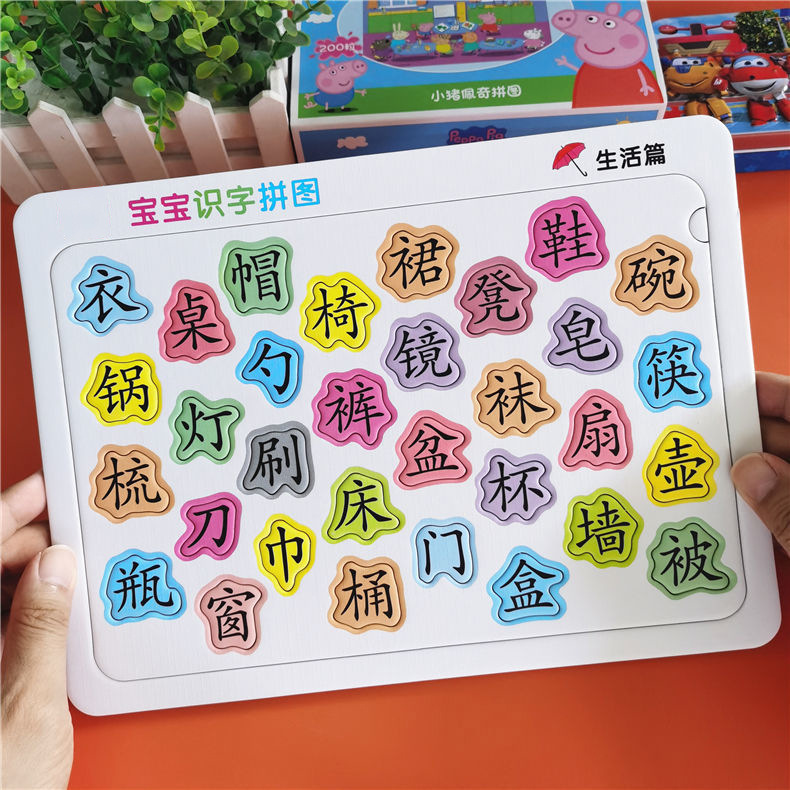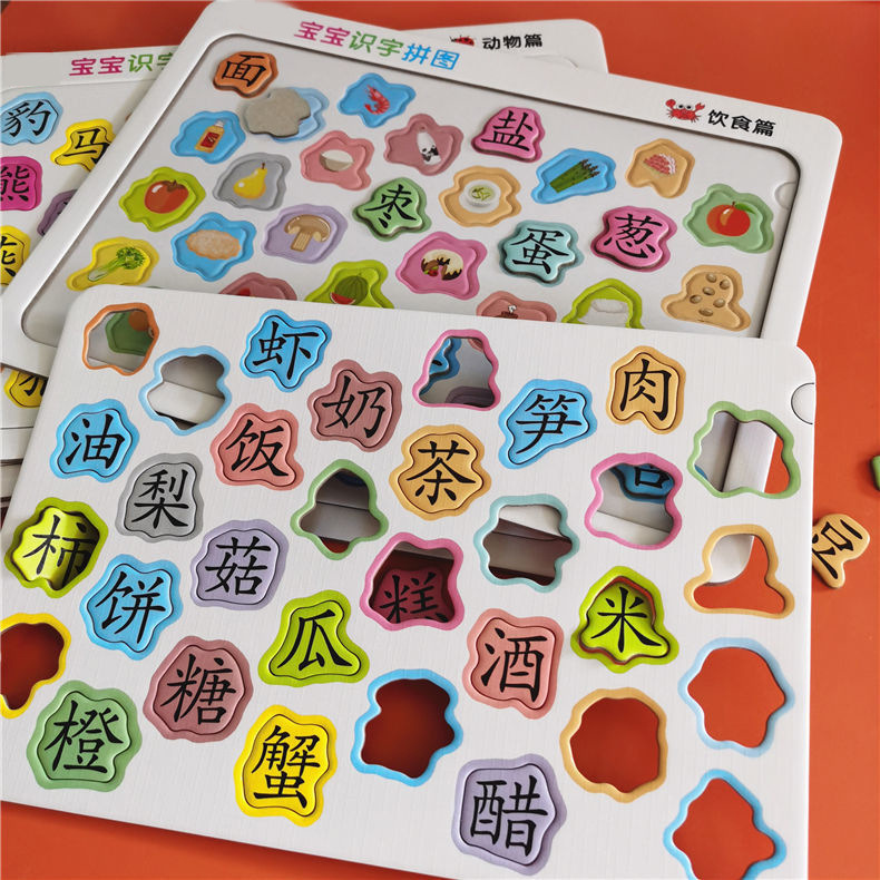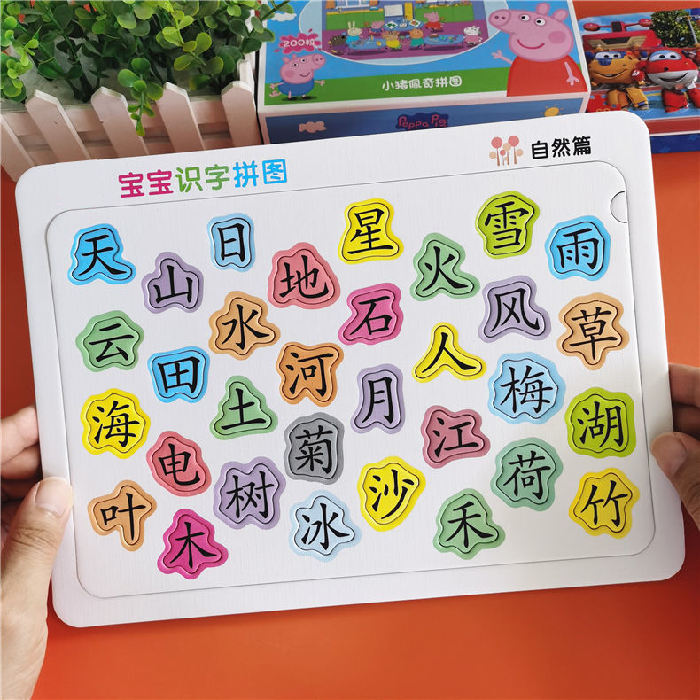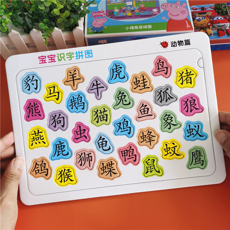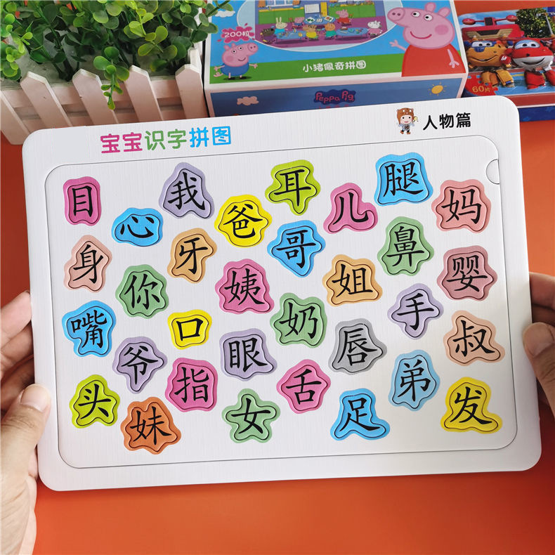 아기 유아 조기교육 문해력 퍼즐 한자 인식 카드 3~4세~6세 어린이 교육용 장난감 3세 어린이를 위한 병음 학습 카드