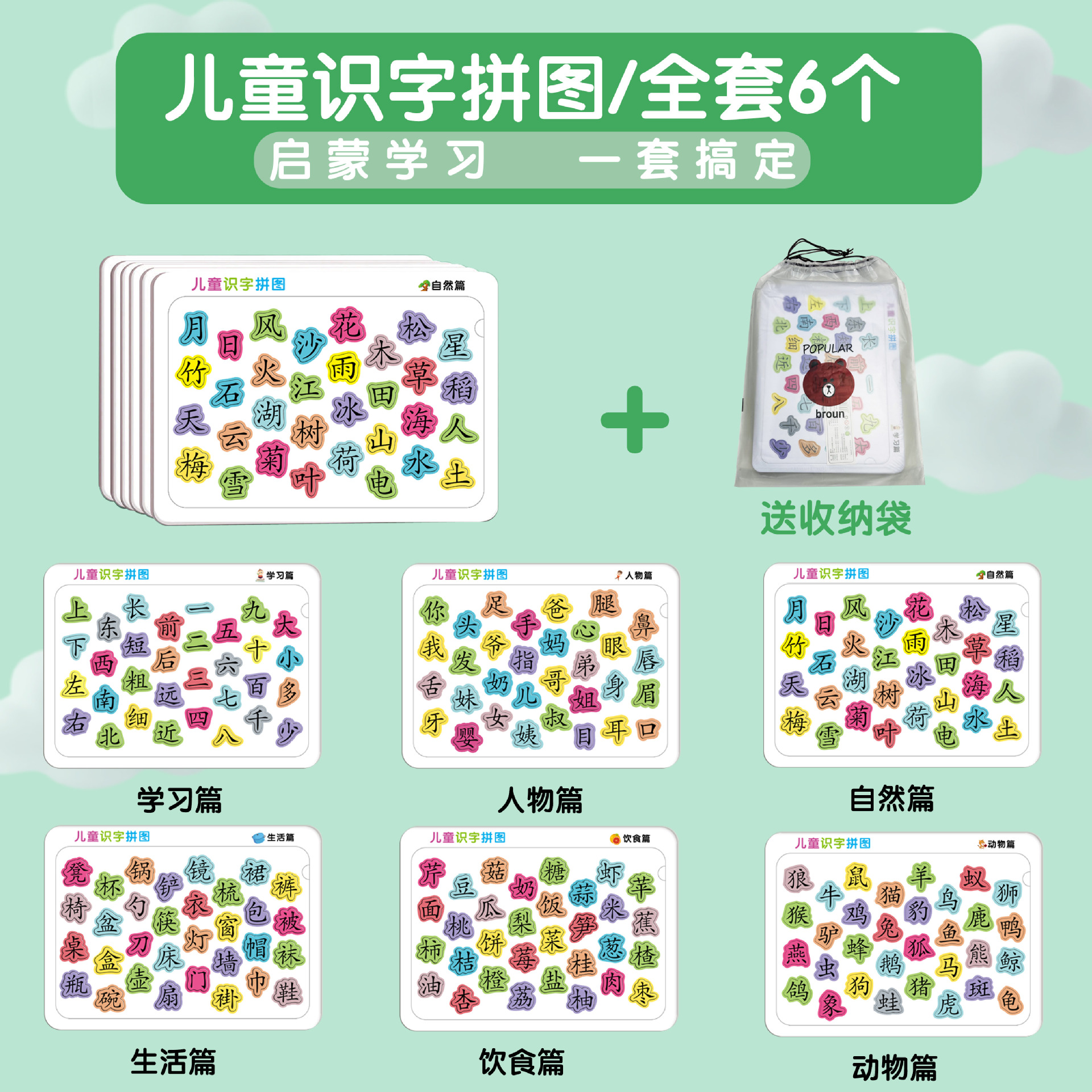 • 【글자 퍼즐】 대형 6장 추가 증정/ 곰돌이 수납 주머니 증정 (학습+자연+인물+생활+식습관+동물)