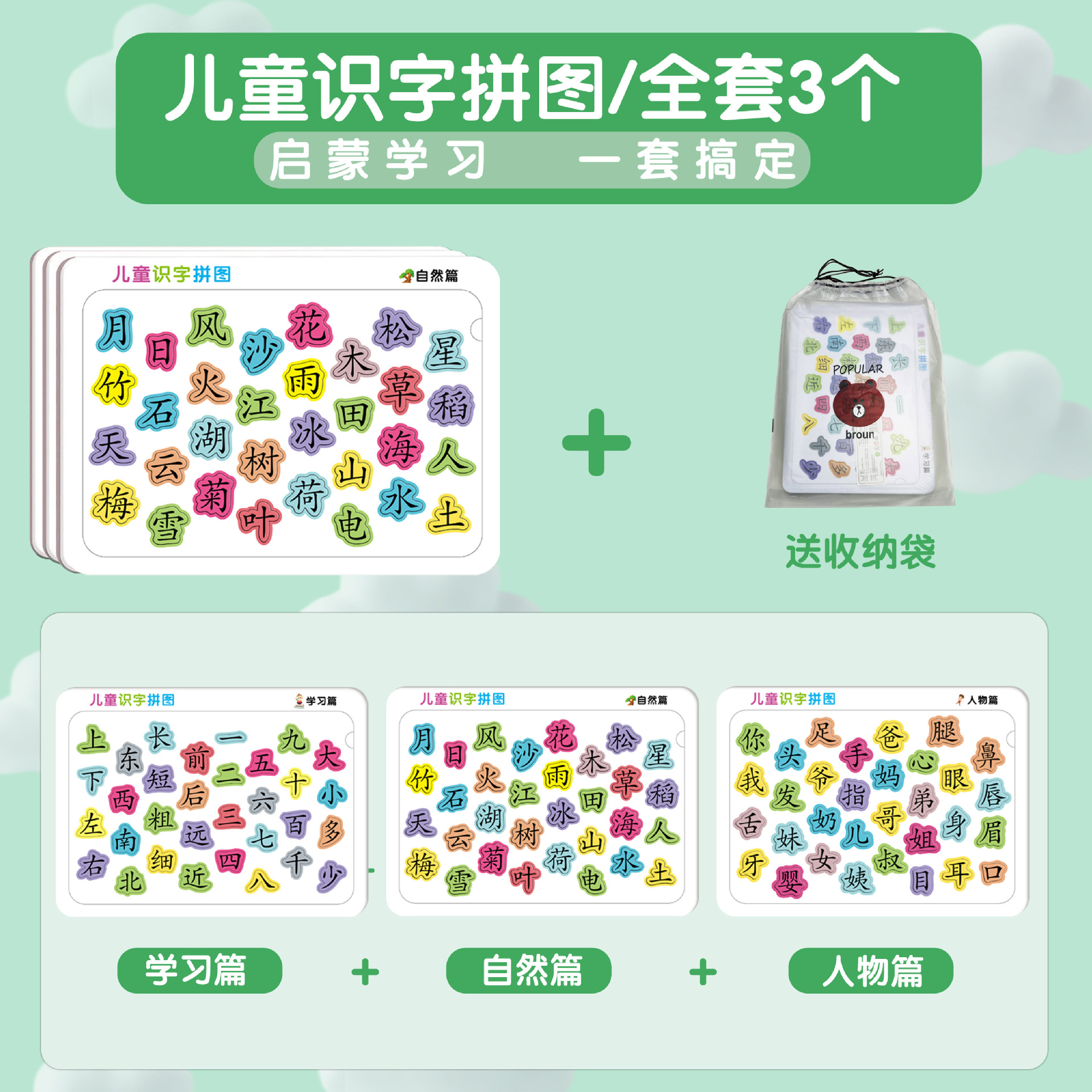 • 【글자 퍼즐】 대형 3장 추가 증정/ 곰돌이 수납 주머니 증정 (학습+자연+인물)