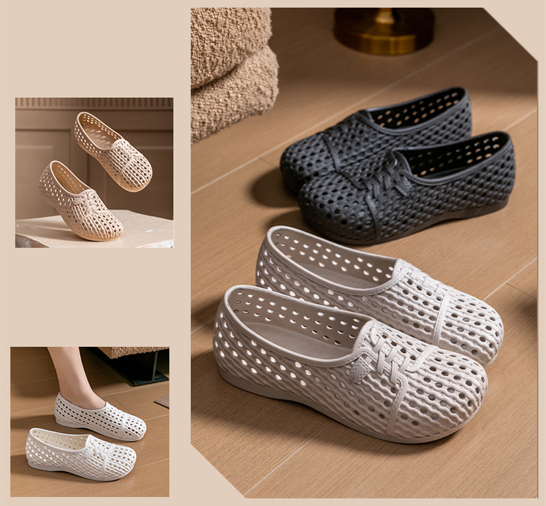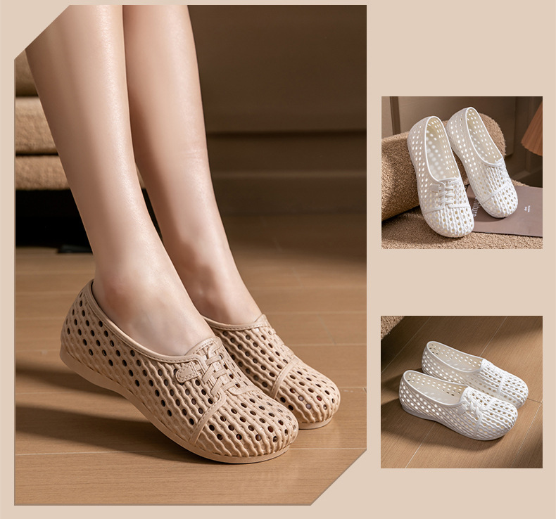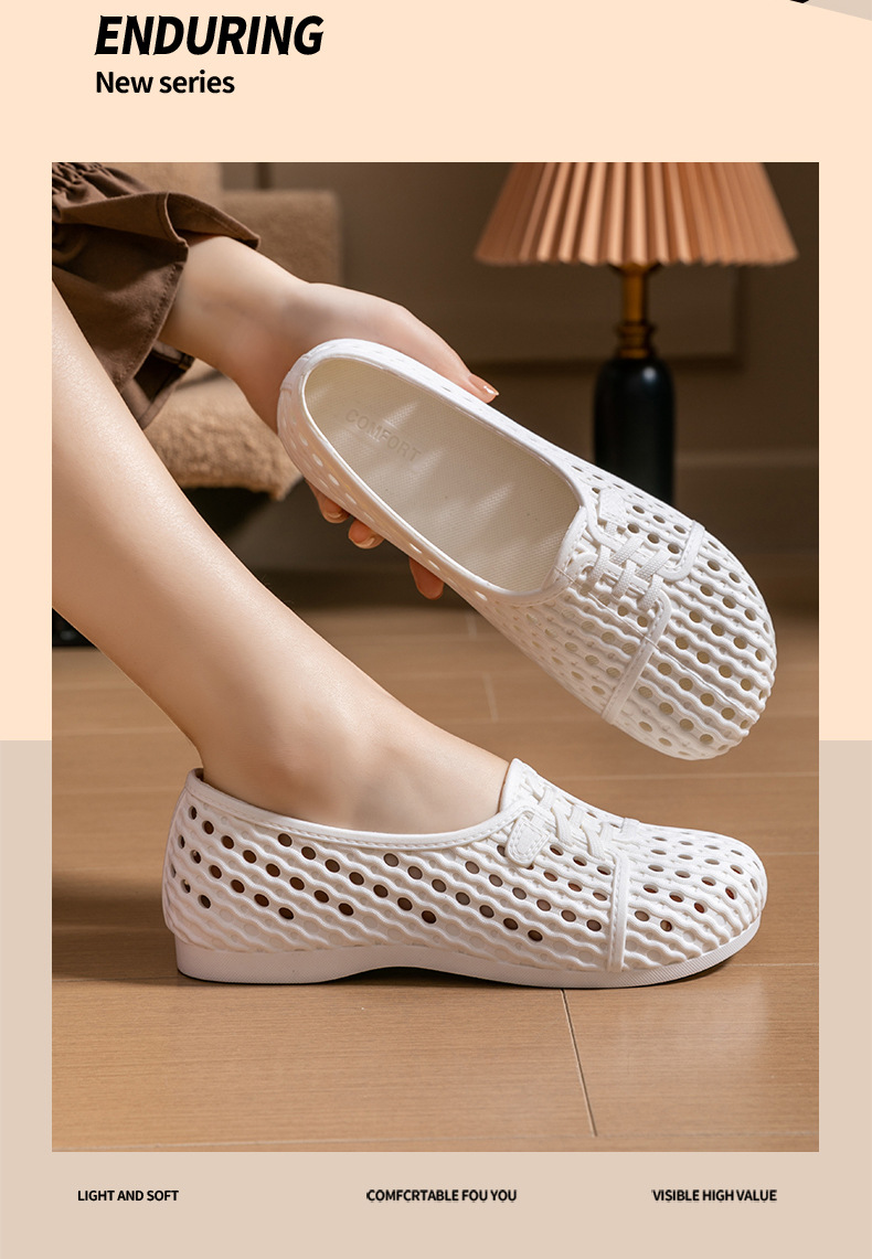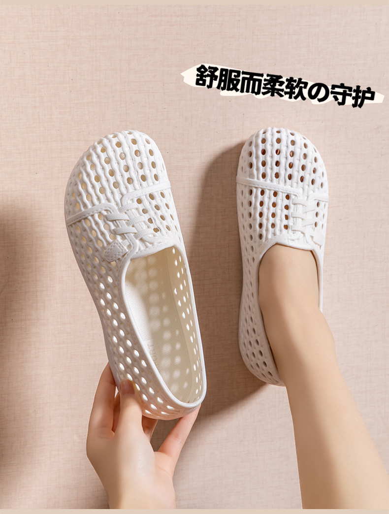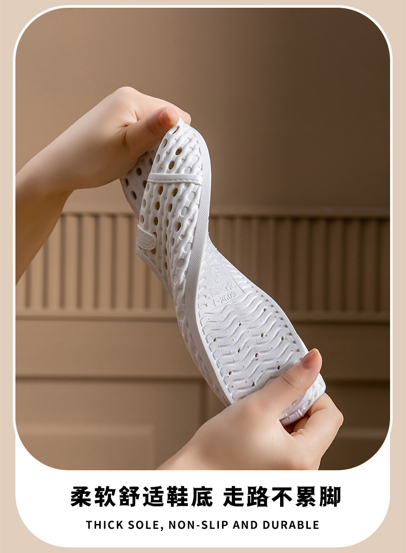 여름에 착용할 여성용 Croc 신발, 중공 통기성 두꺼운 밑창 부드러운 밑창 간호사 신발, 캐주얼 해변 신상 바오터우 샌들