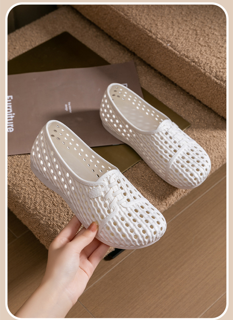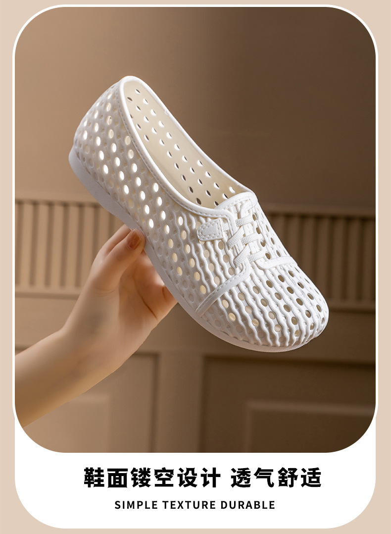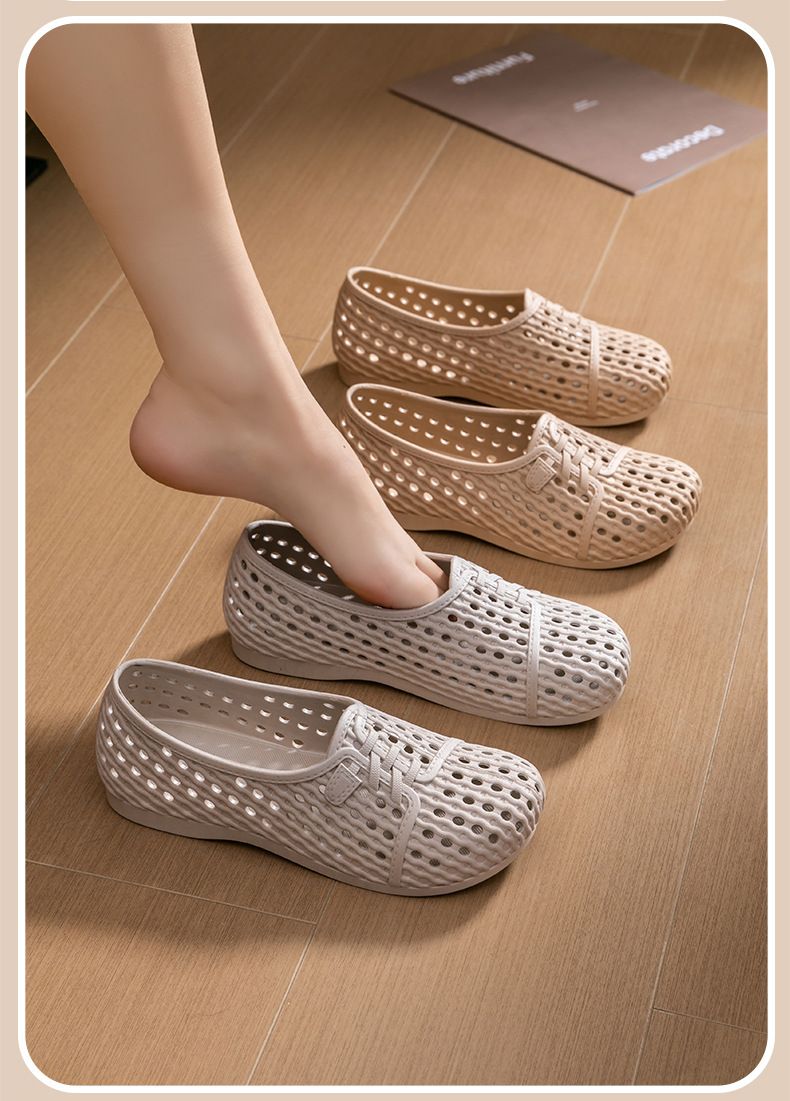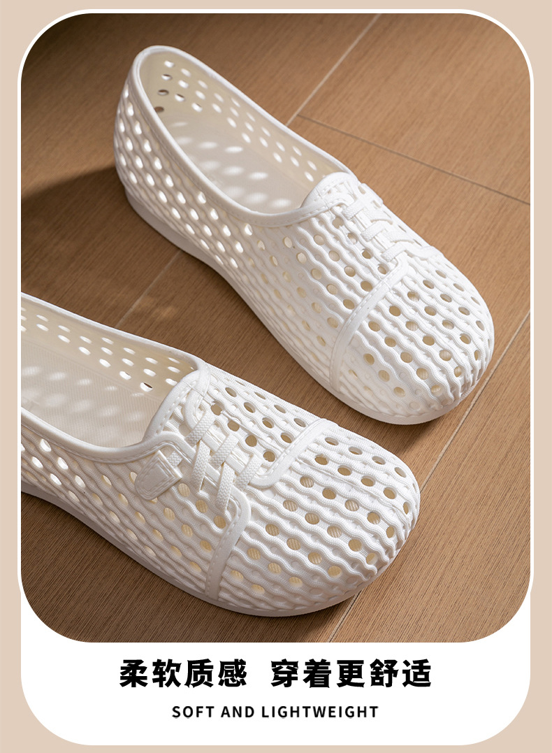 여름에 착용할 여성용 Croc 신발, 중공 통기성 두꺼운 밑창 부드러운 밑창 간호사 신발, 캐주얼 해변 신상 바오터우 샌들