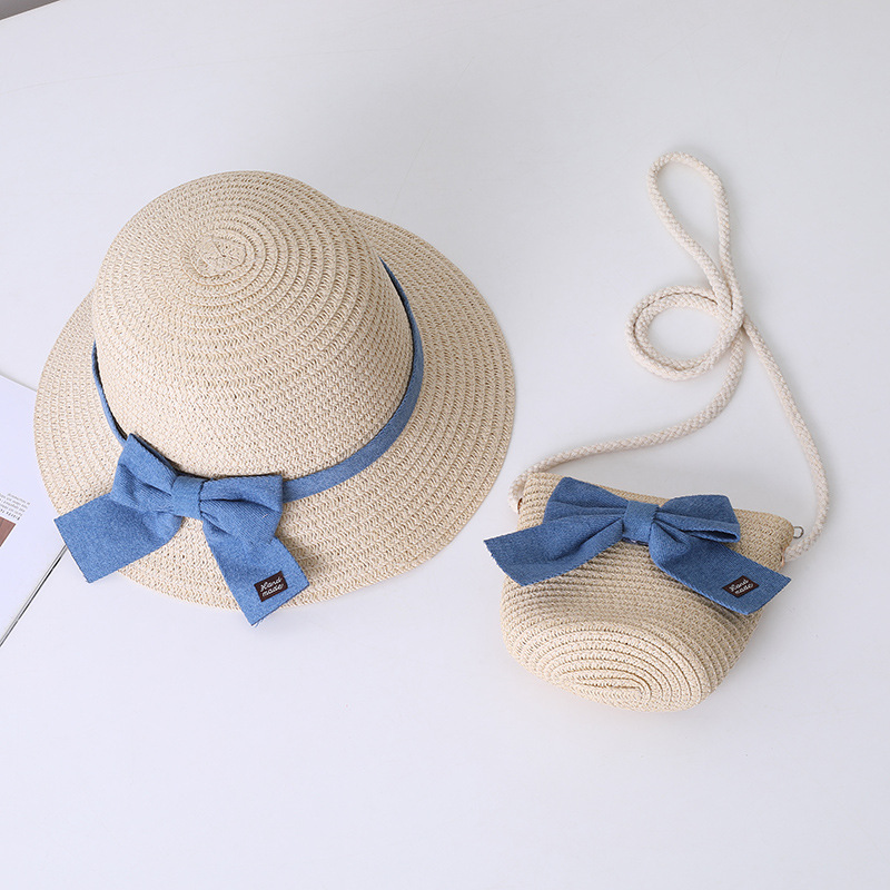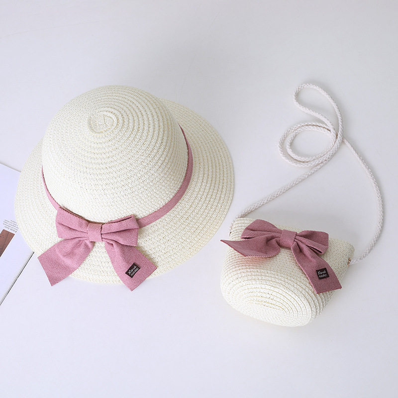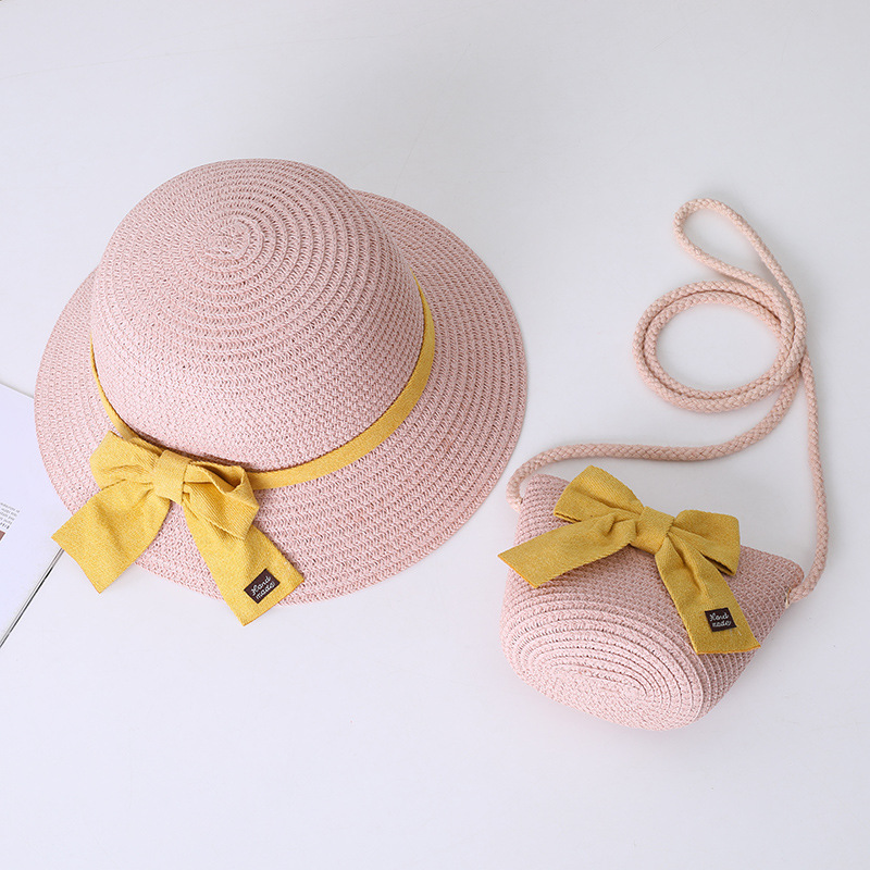 어린이 태양 모자 부모-자식 태양 모자 여름 밀짚 모자 작은 가방 세트 공주 해변 여름 태양 보호 어부 모자