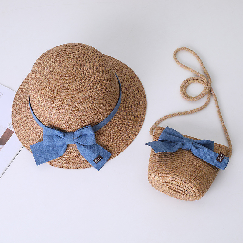 어린이 태양 모자 부모-자식 태양 모자 여름 밀짚 모자 작은 가방 세트 공주 해변 여름 태양 보호 어부 모자스토어 가기