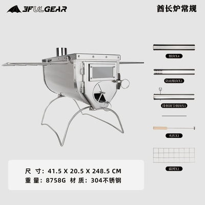 三峰出酋长户外柴火炉,此款柴火炉有2个材质的可选择,201不锈钢和304不锈钢的,因系统设置原因,如有需要一个的请下单后联系客服改价,