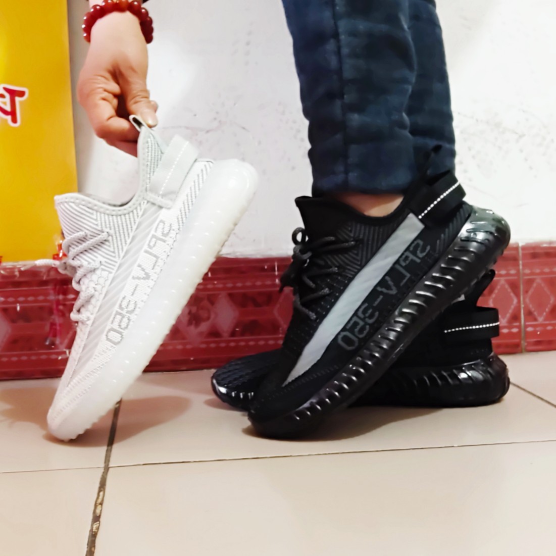 봄과 여름 새로운 팝콘 코코넛 신발 젤리 바닥 통기성 플라이 짠 레이스 업 패션 러닝 캐주얼 스포츠 신발스토어 가기