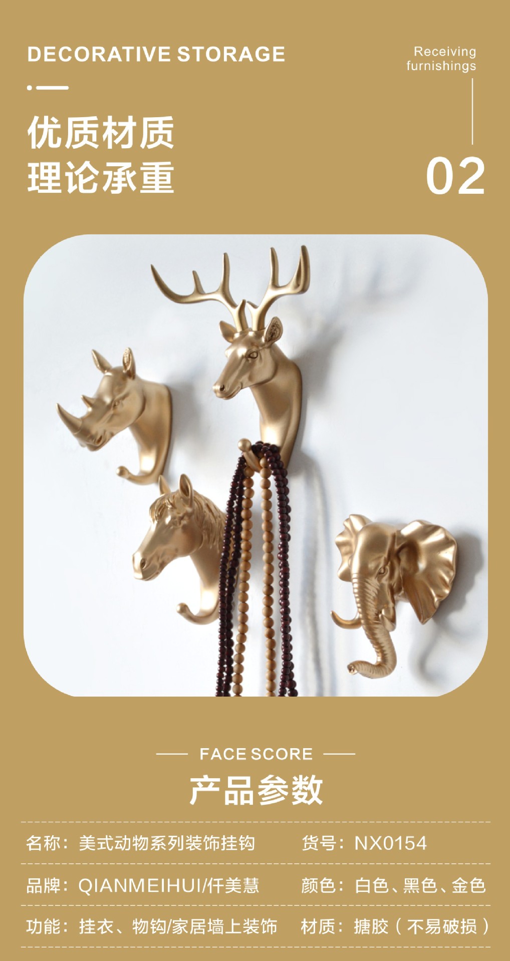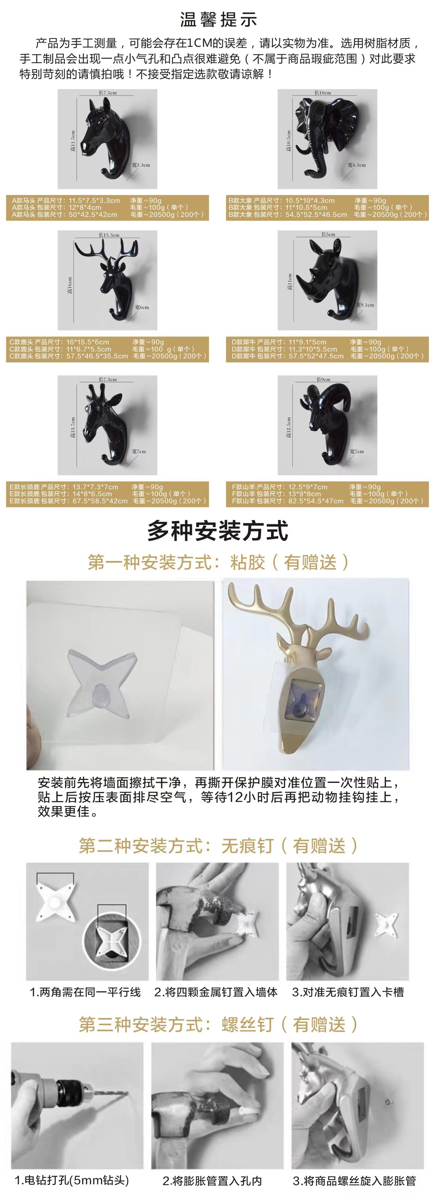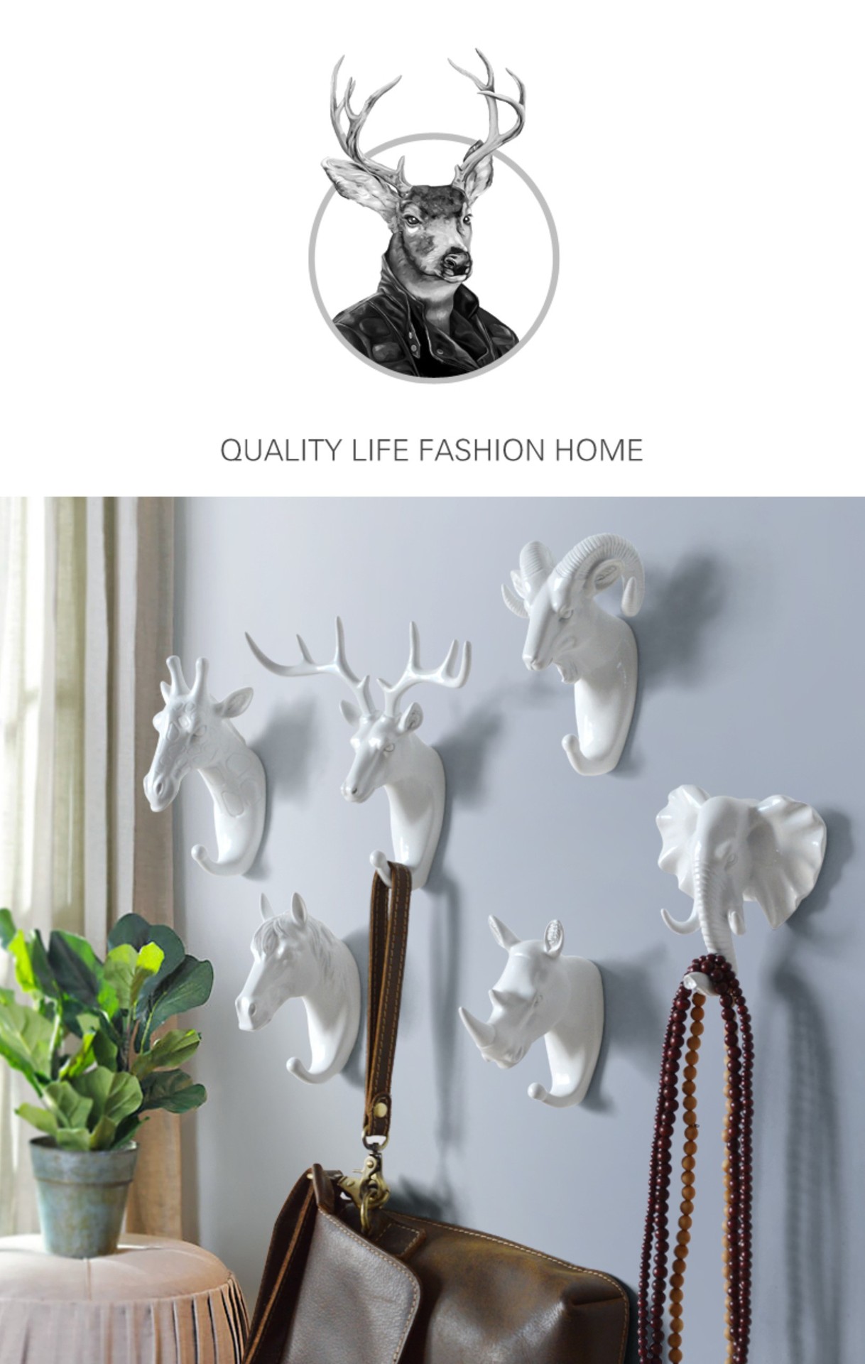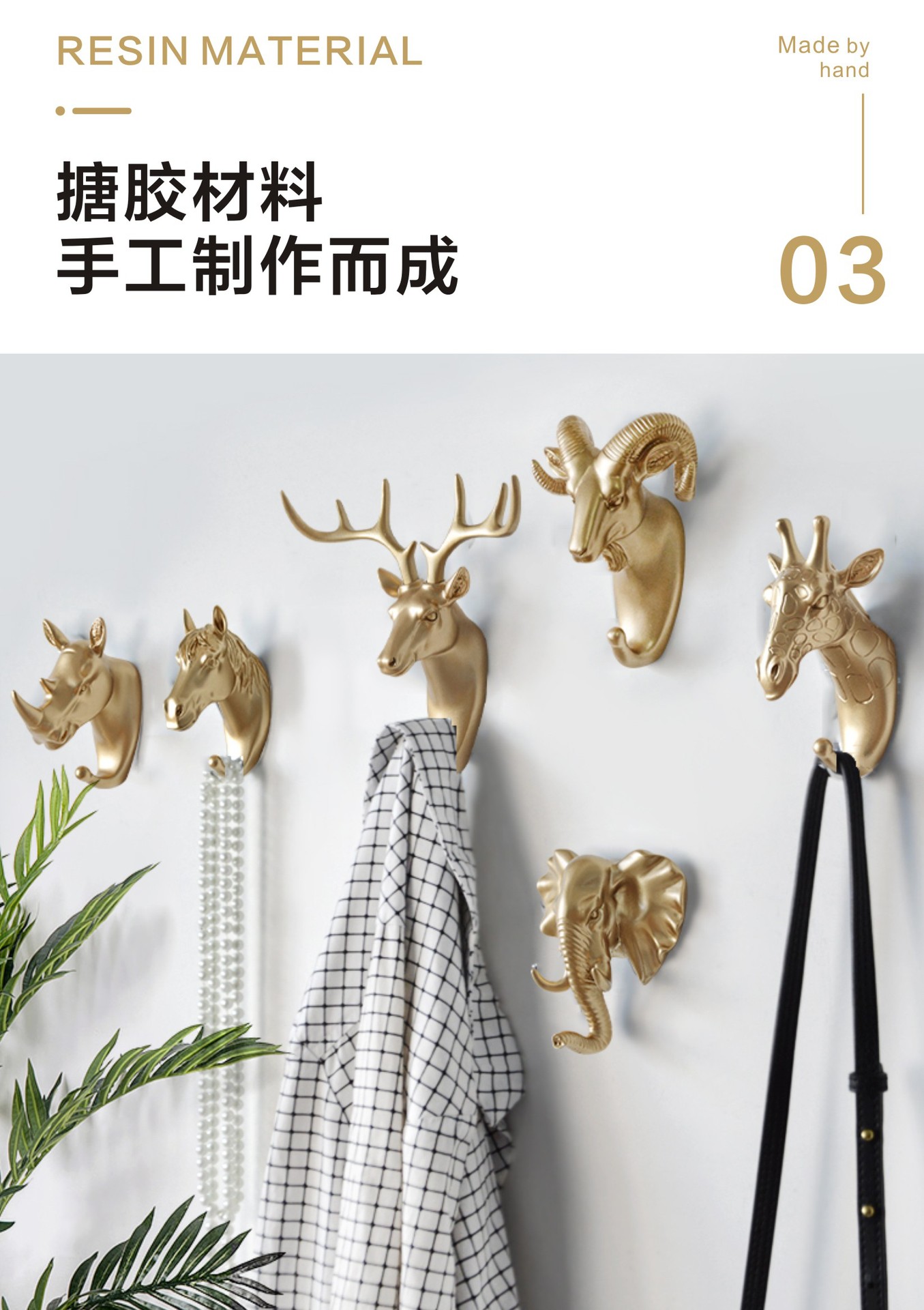 국경 도매 유럽의 창조적 인 후크 펀치없는 강한 붙여 넣기 벽 장식 벽 걸이 사슴 머리 옷 후크스토어 가기