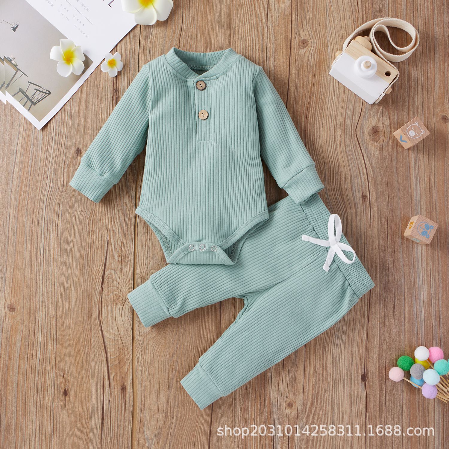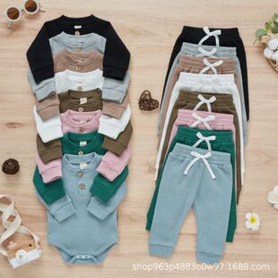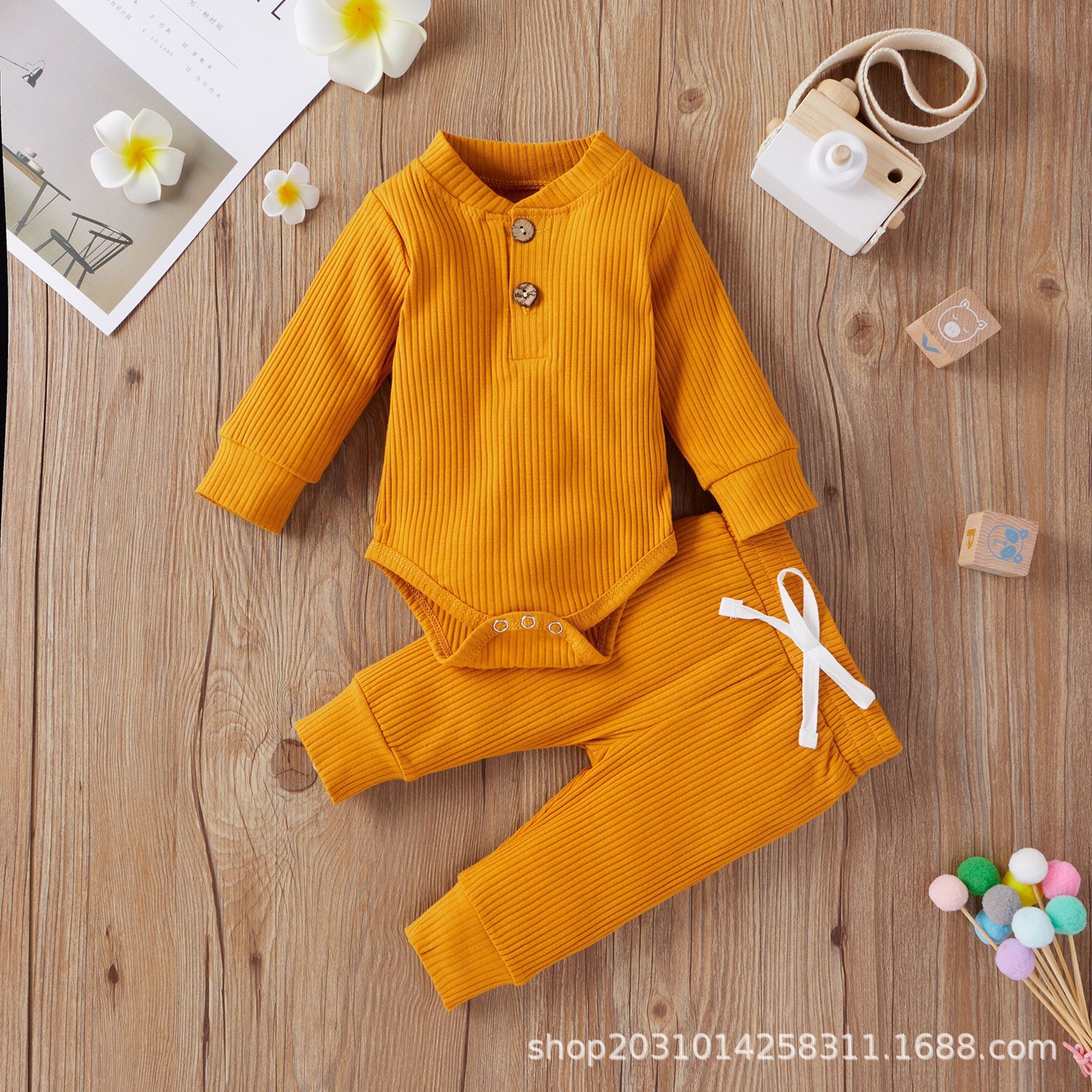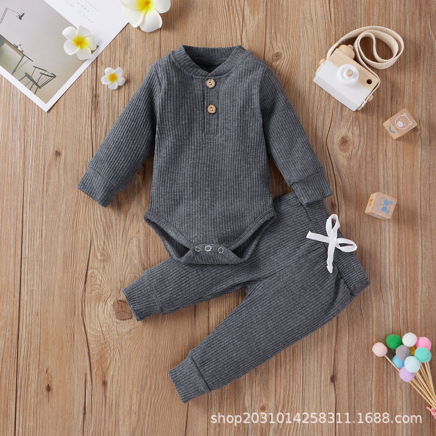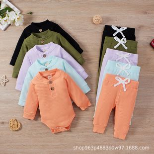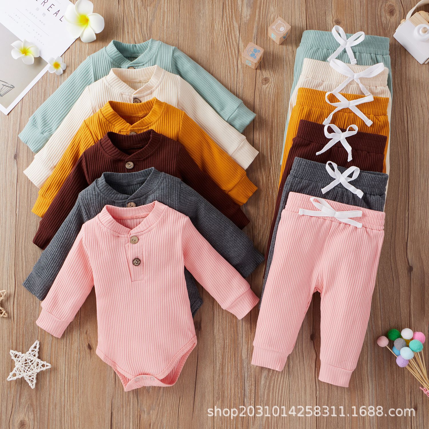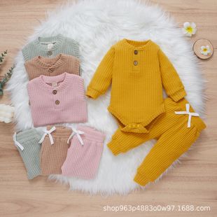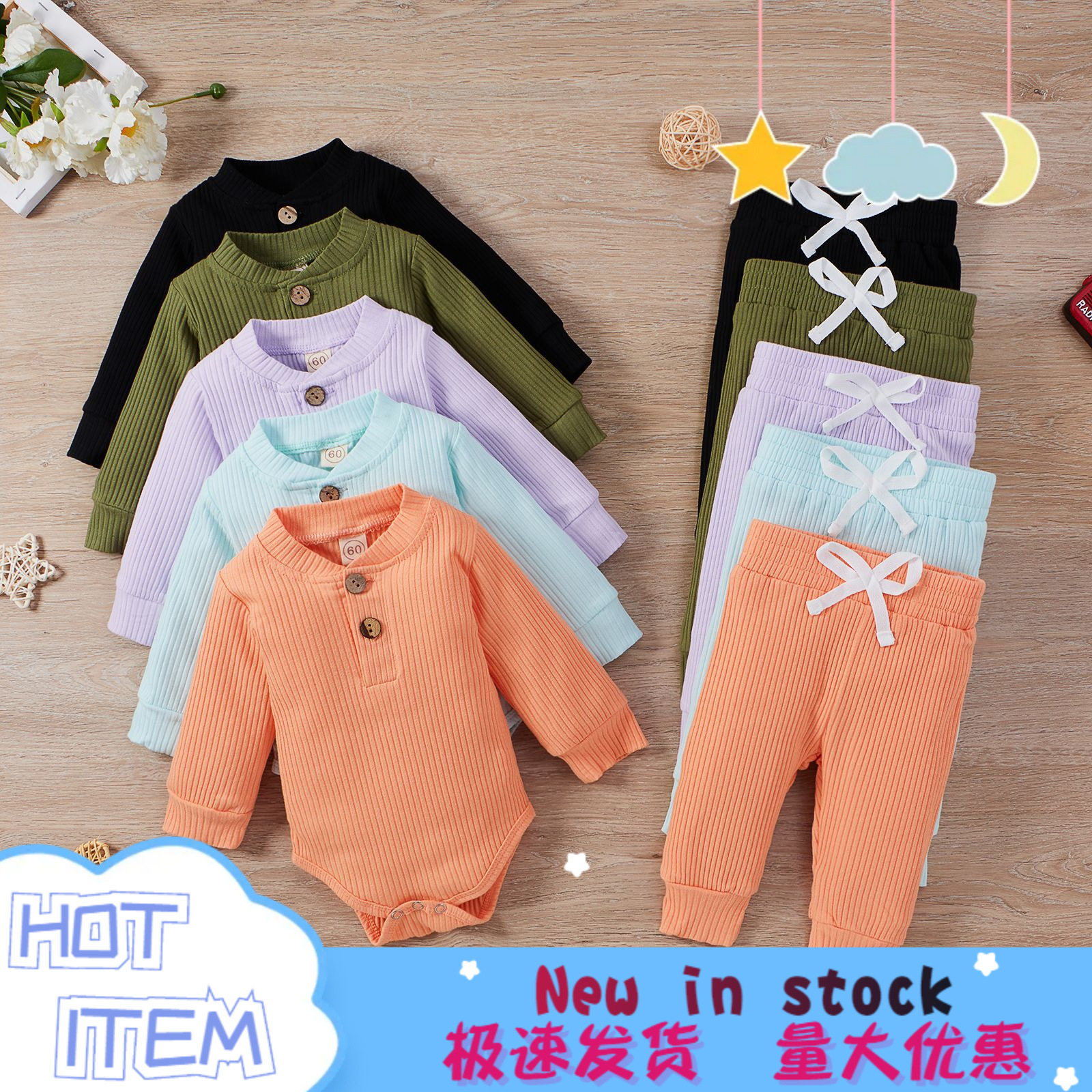 2022 새로운 아동복 아마존 소년과 소녀 단색 원피스 긴 소매 바지 아기 바닥 세트 재고