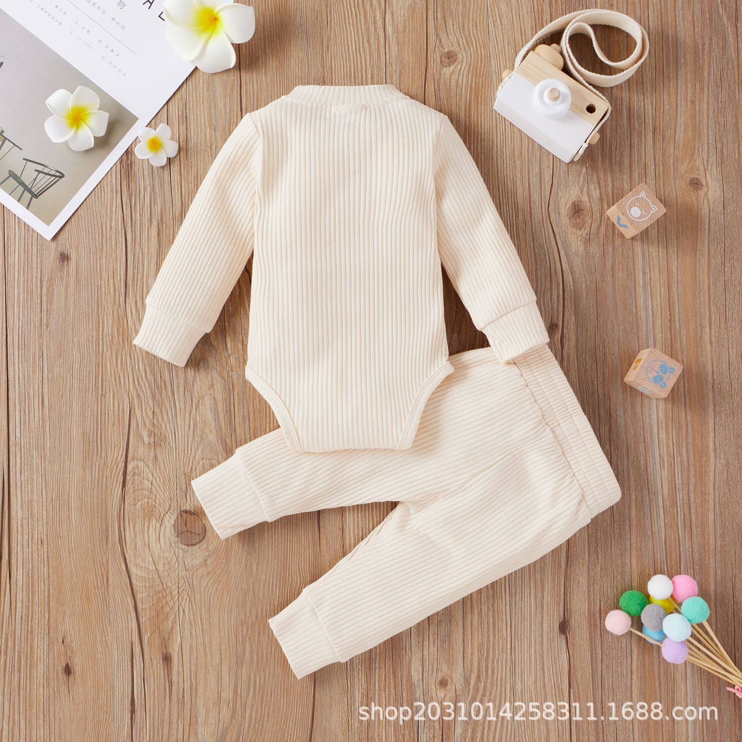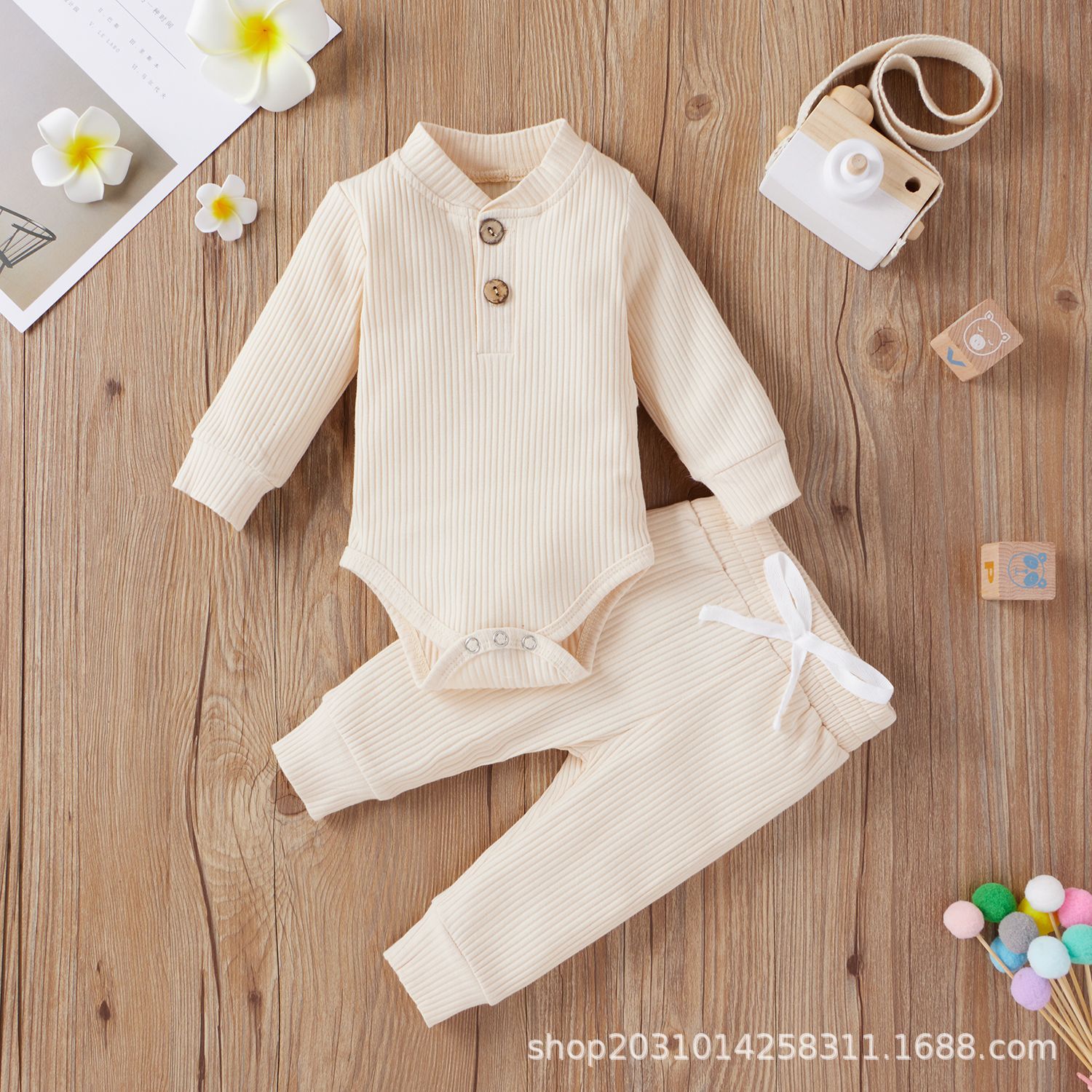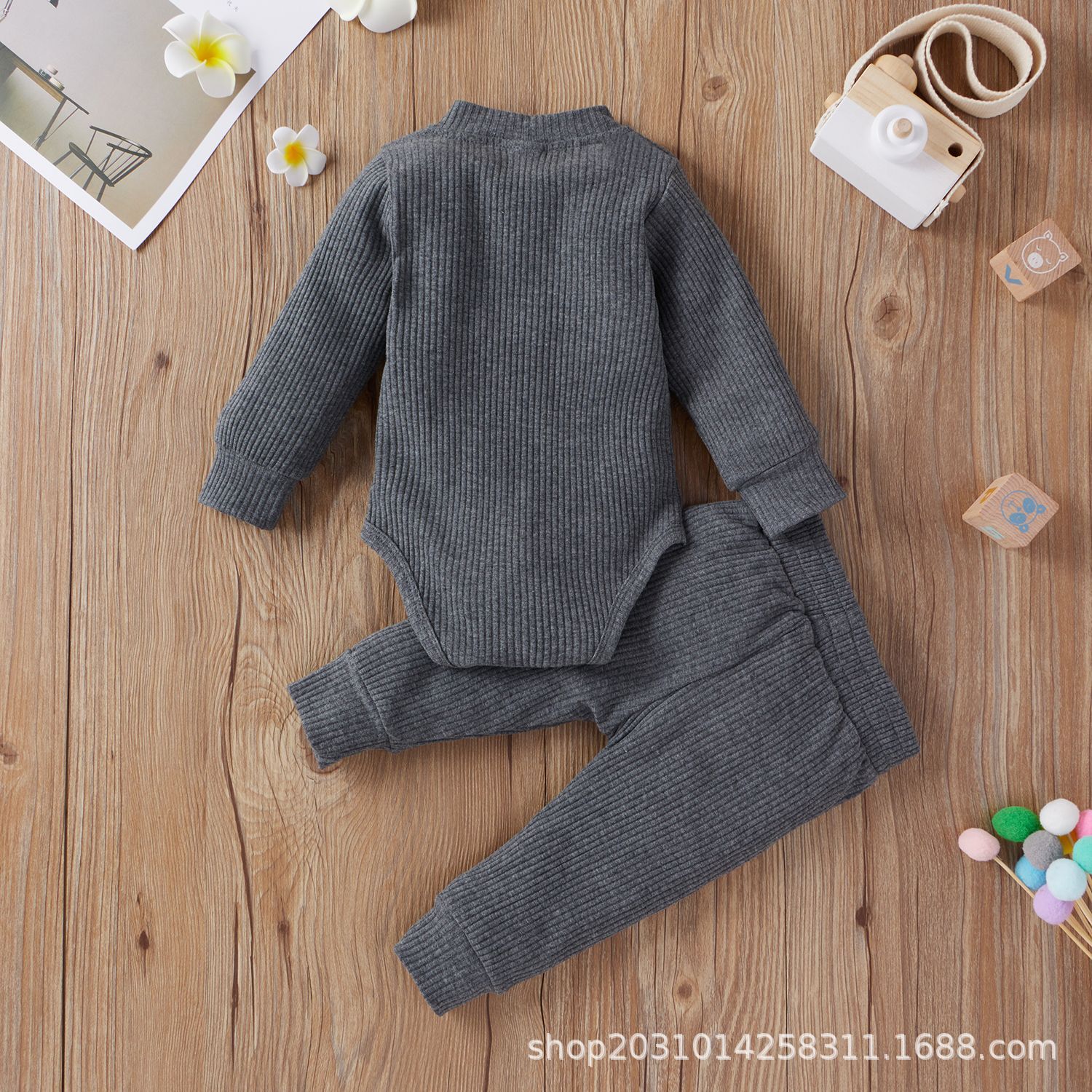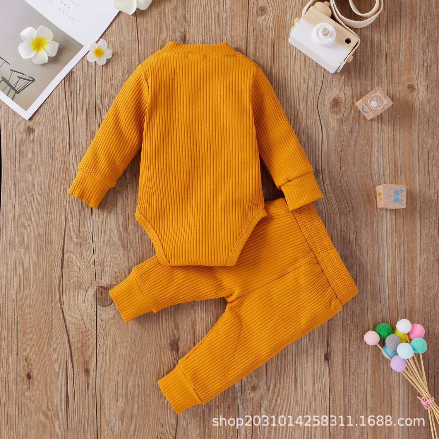 2022 새로운 아동복 아마존 소년과 소녀 단색 원피스 긴 소매 바지 아기 바닥 세트 재고