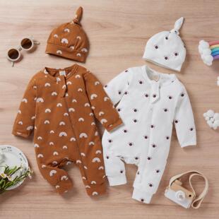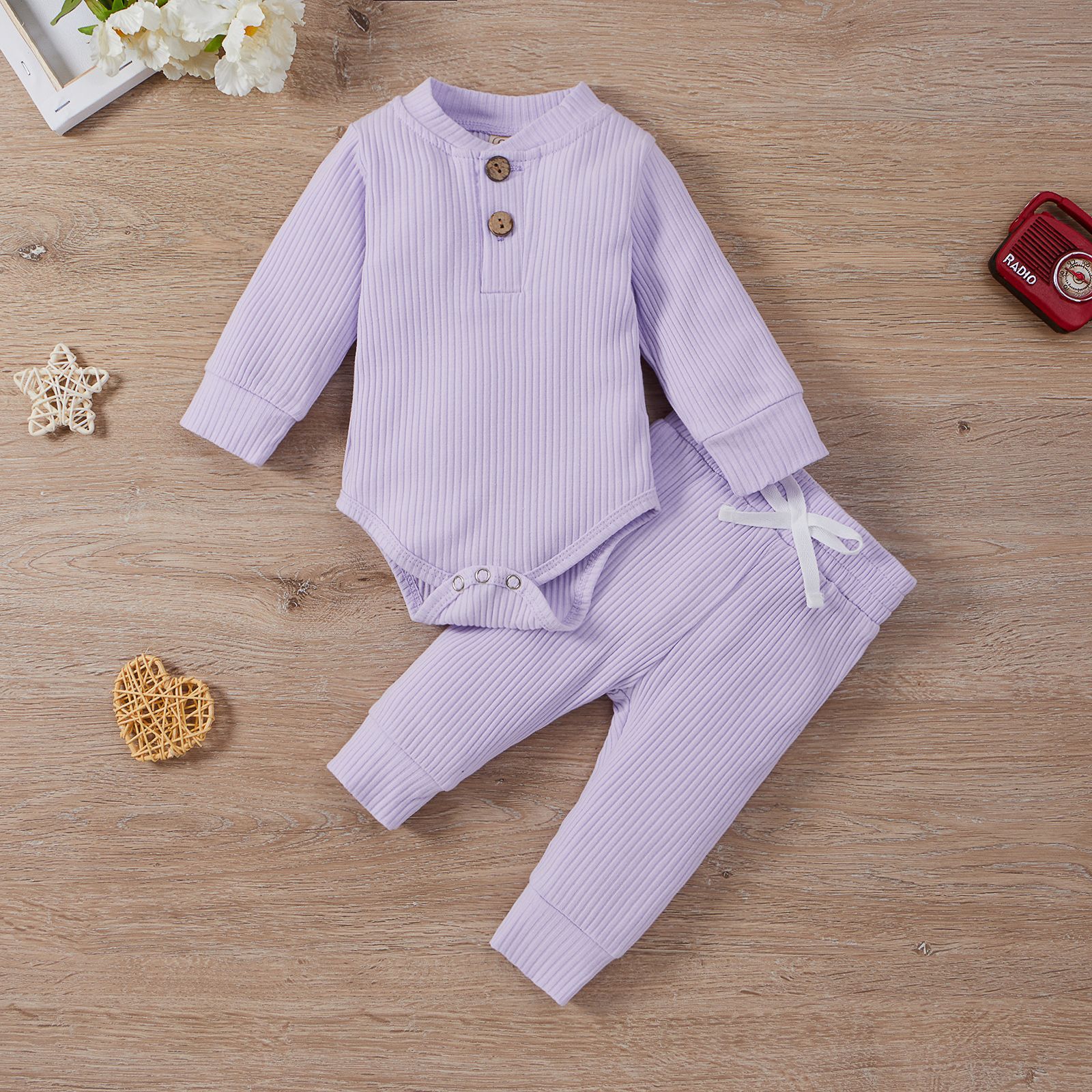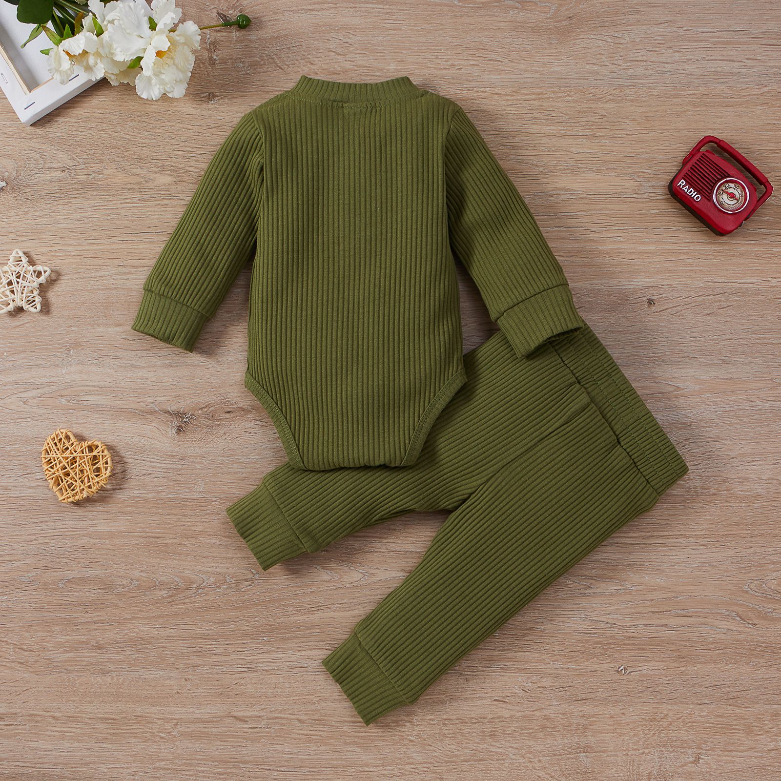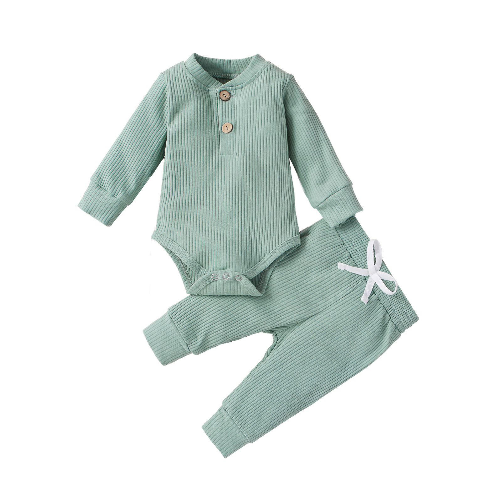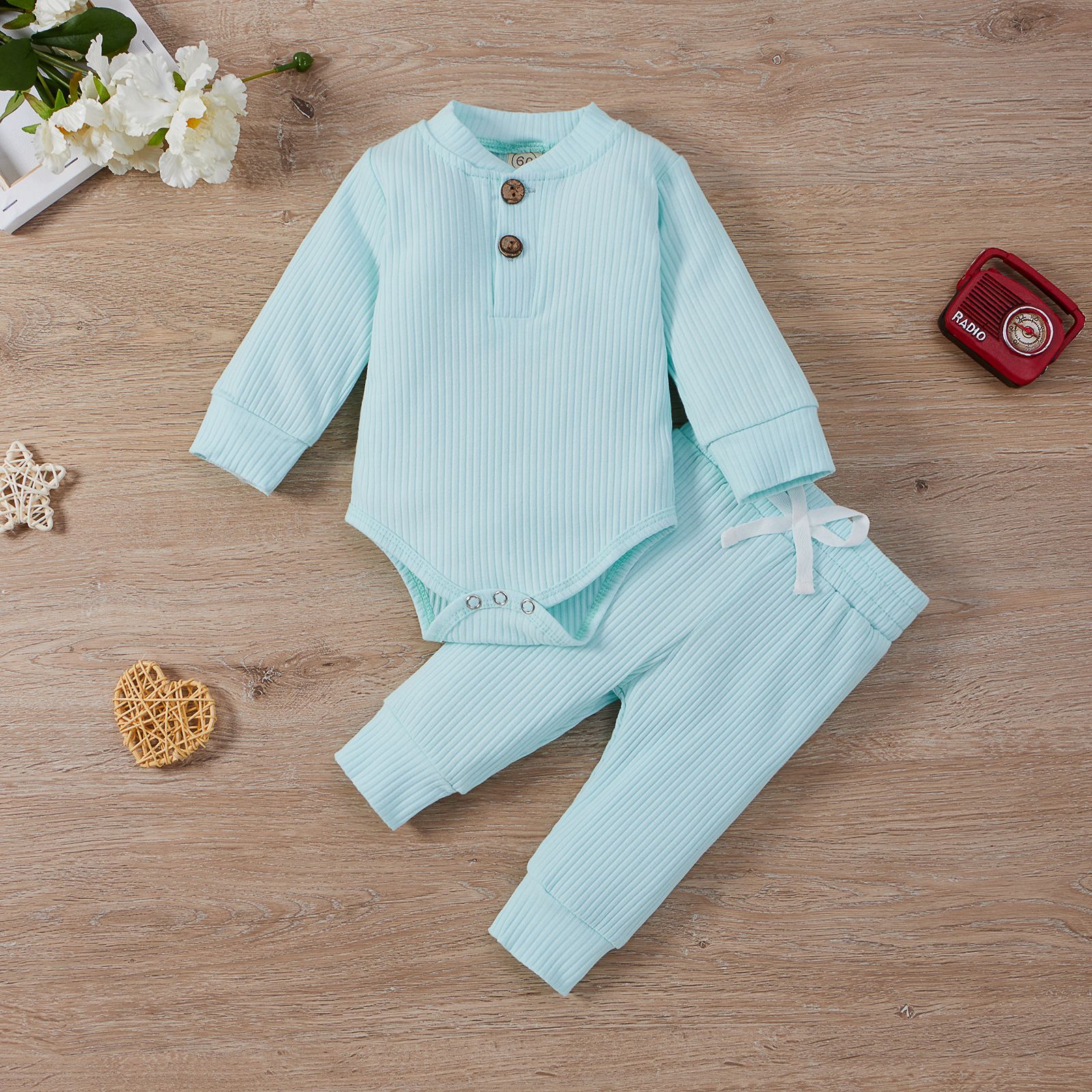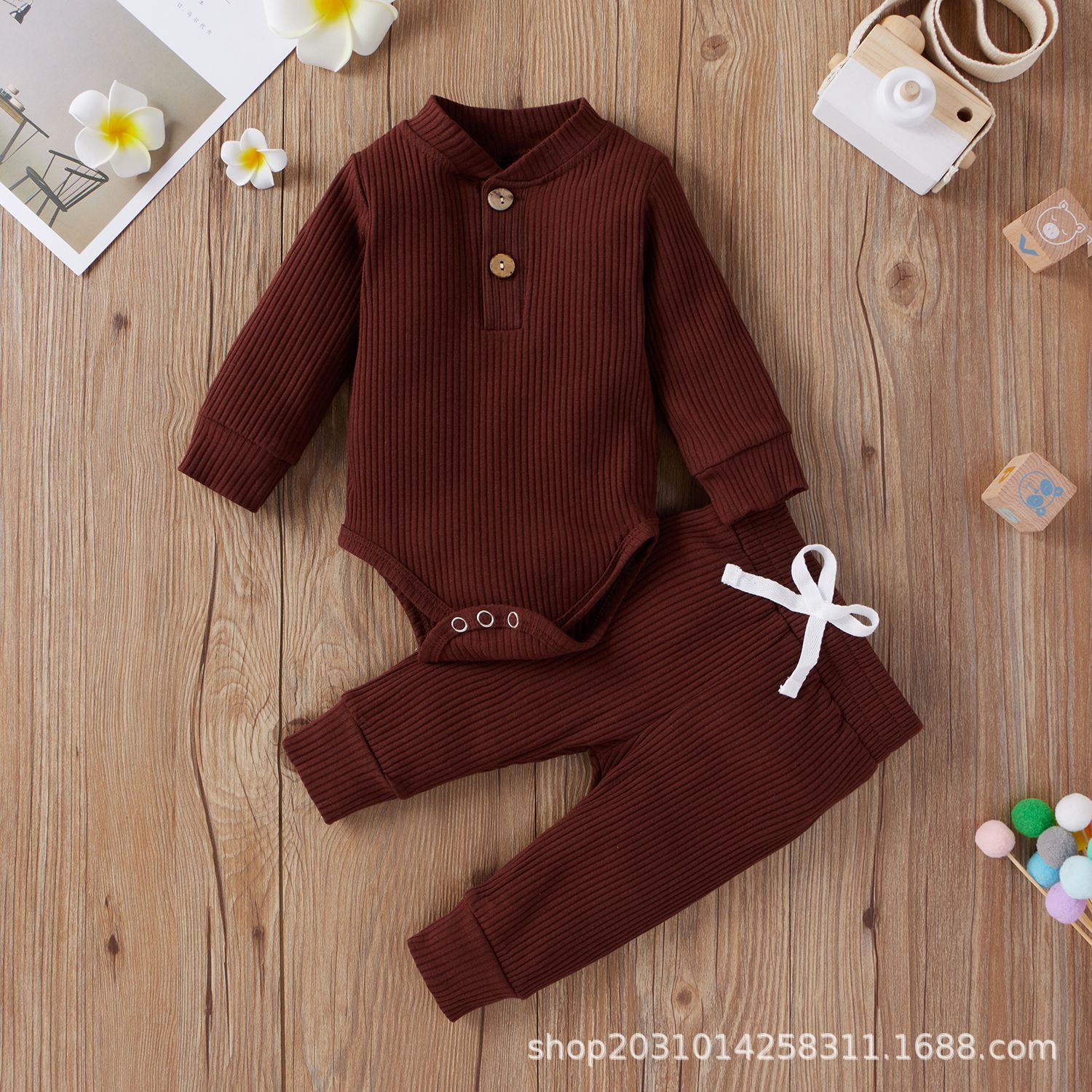 2022 새로운 아동복 아마존 소년과 소녀 단색 원피스 긴 소매 바지 아기 바닥 세트 재고